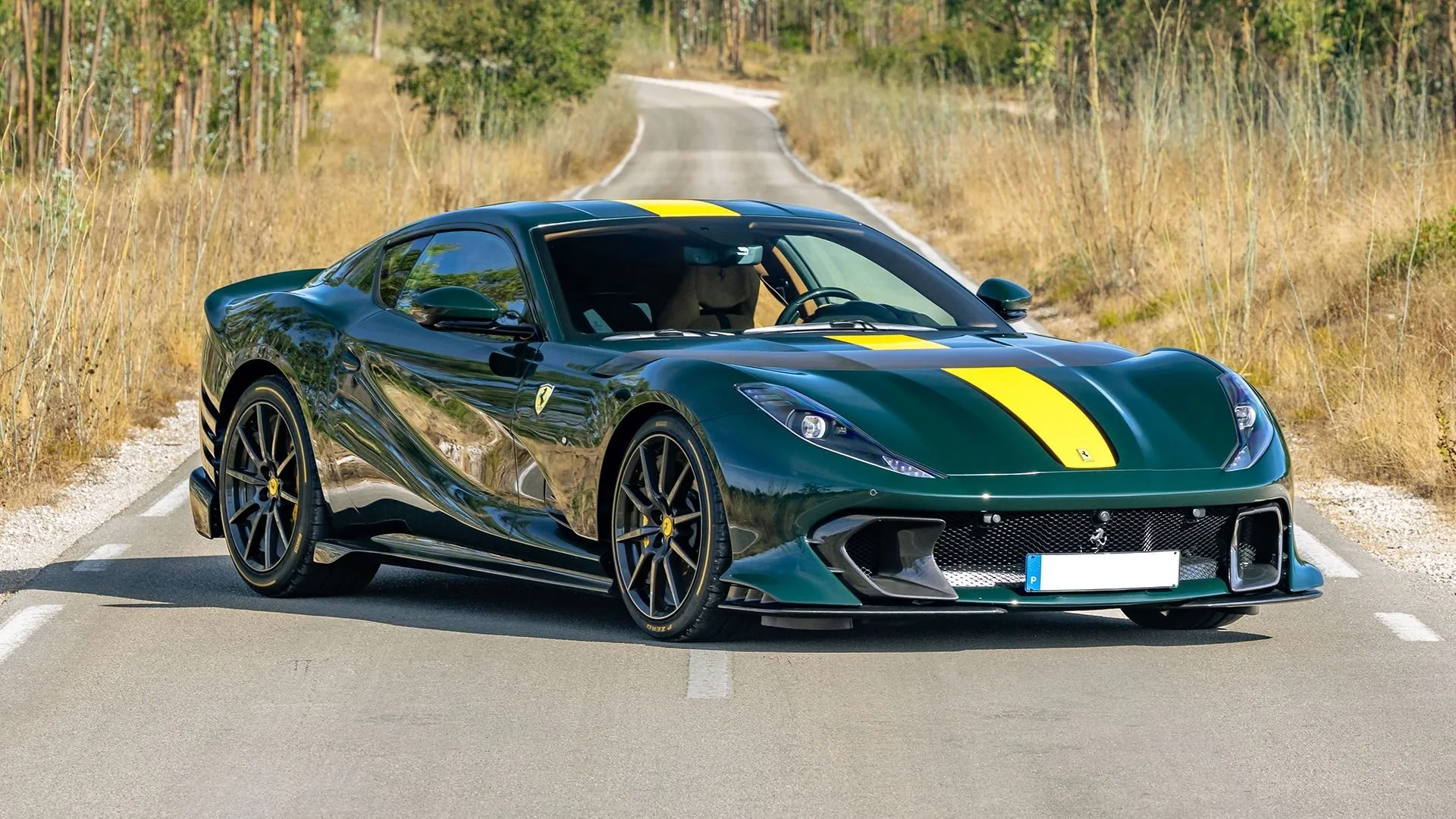 Exemplaire issu de la série limitée à 999 unités, cette 812 Competizione est sortie d’usine en Janvier 2023 dans une superbe configuration Verde British Racing avec la bande centrale peinte en Giallo Fly. Neuve, cette 812 Competizione n’affiche que 1 324 Kms au compteur et est déjà certifiée Ferrari Classiche.