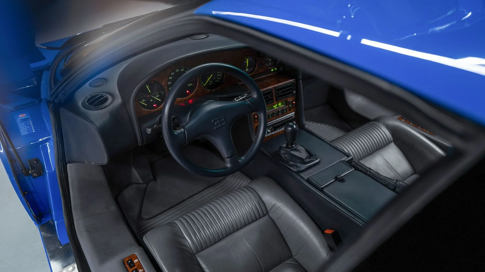 Produite à seulement 85 exemplaires, cette EB110 GT est peinte dans le traditionnel Blue Bugatti. Livrée neuve à Dubai, la voiture a ensuite été immatriculée en Angleterre. Récemment observée sur le stand du Supercars Owners Circle (SOC) au salon Rétromobile en 2024, la voiture est toujours dans un état proche du neuf comme l’en atteste son kilométrage de seulement 8 204 Kms.