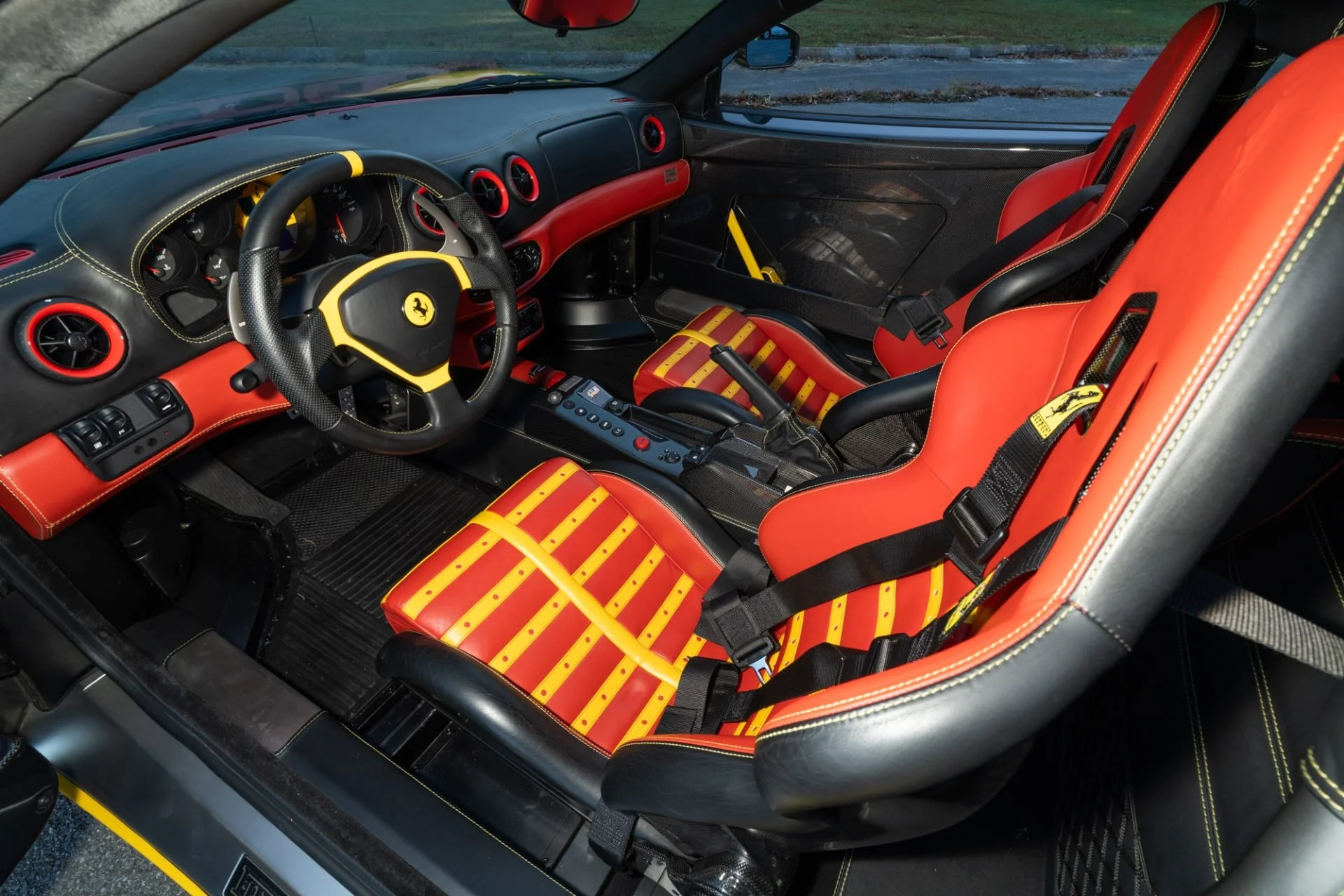 Commandée neuve par Phil Bachman, cette Ferrari Challenge Stradale est quasiment neuve, puisqu’elle n’affiche que 327 miles au compteur. La voiture a été configurée dans une configuration très originale, Giallo Modena à l’extérieur et un intérieur entièrement customisé avec des sièges Daytona Rosso et Giallo. Cet exemplaire serait le dernier produit pour les Etats-Unis.