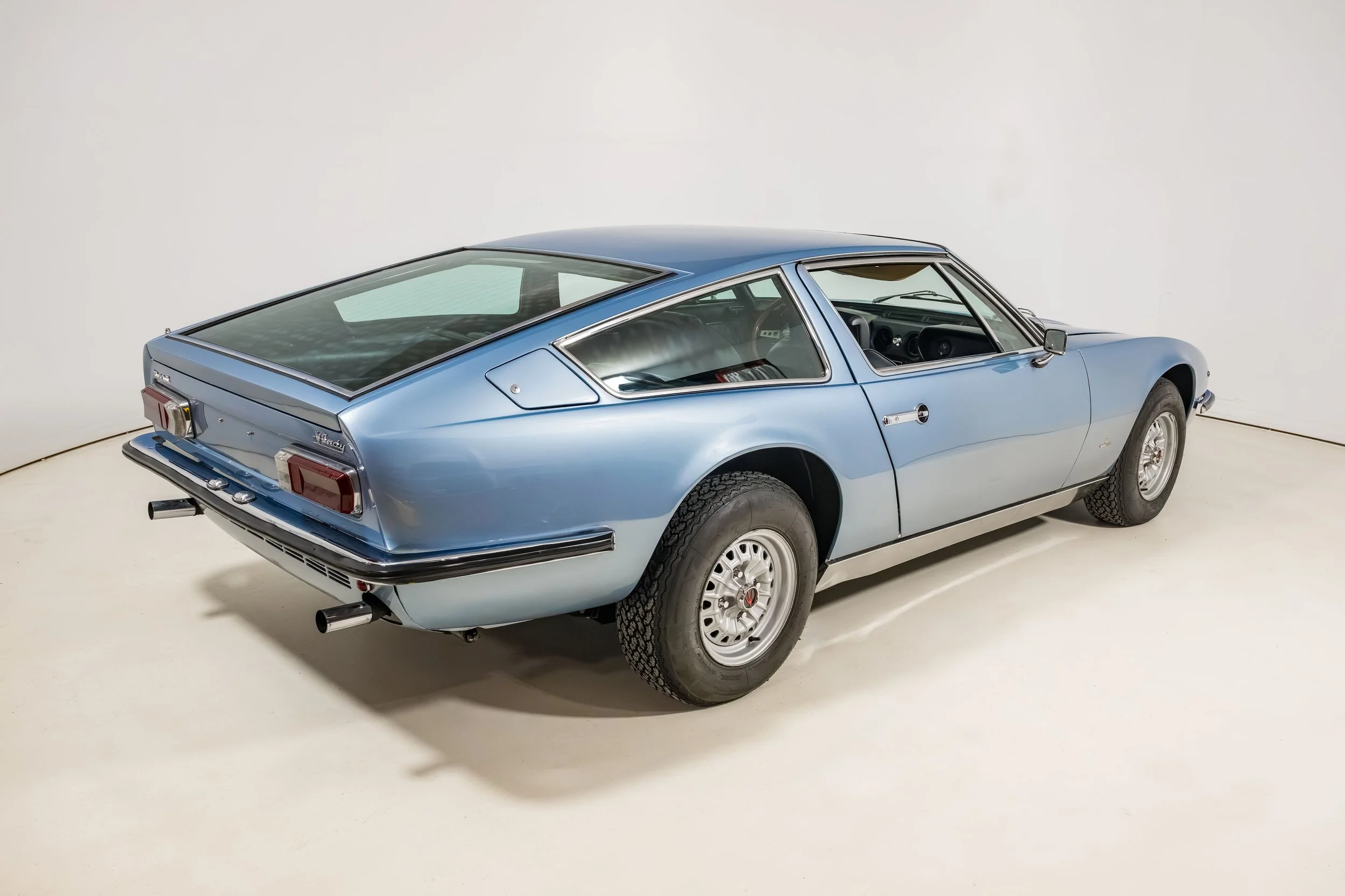 Livrée neuve au Mexique, cette Maserati est peinte dans un très beau Azzurro Hyperion avec un intérieur en cuir noir. Cette configuration est celle que possède la voiture aujourd’hui après une restauration menée par l’un de ses précédents propriétaires. Equipée d’un moteur 4.7 à sa sortie d’usine, cette Indy a été équipée d’un moteur Maserati 4.9 pour plus d'e confort à la conduite.