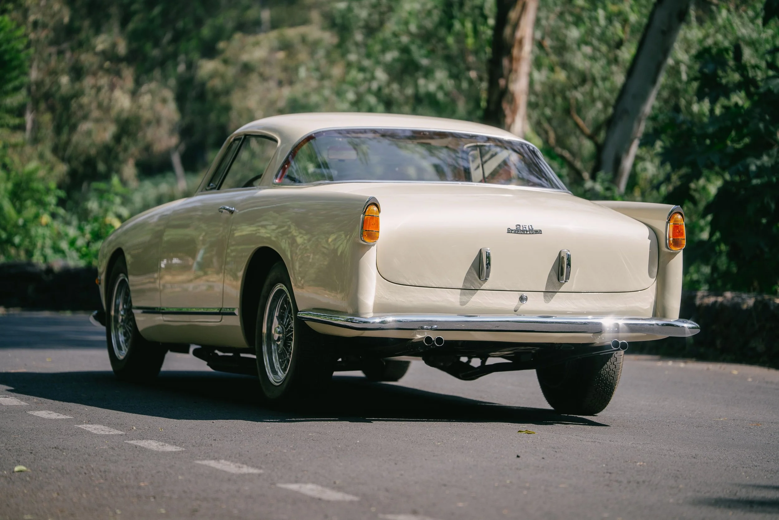 Produite à 68 exemplaires en carrosserie Boano, cette Ferrari 250 GT est sortie des usines de Maranello le 7 décembre 1956. Livrée dans la foulée à son premier propriétaire, la voiture est restée en Italie jusque dans les années 80 où elle a été exportée vers les Etats-Unis. Après être restée entre les mains de son premier propriétaire Américain pendant près de 35 ans, la voiture a été achetée par son propriétaire actuel qui engagea une restauration complète et minutieuse de la voiture. C’est pourquoi elle est présentée aujourd’hui dans un état parfait. On regrettera tout de même le fait que la voiture ne soit pas dans sa configuration originale, gris avec intérieur noir.