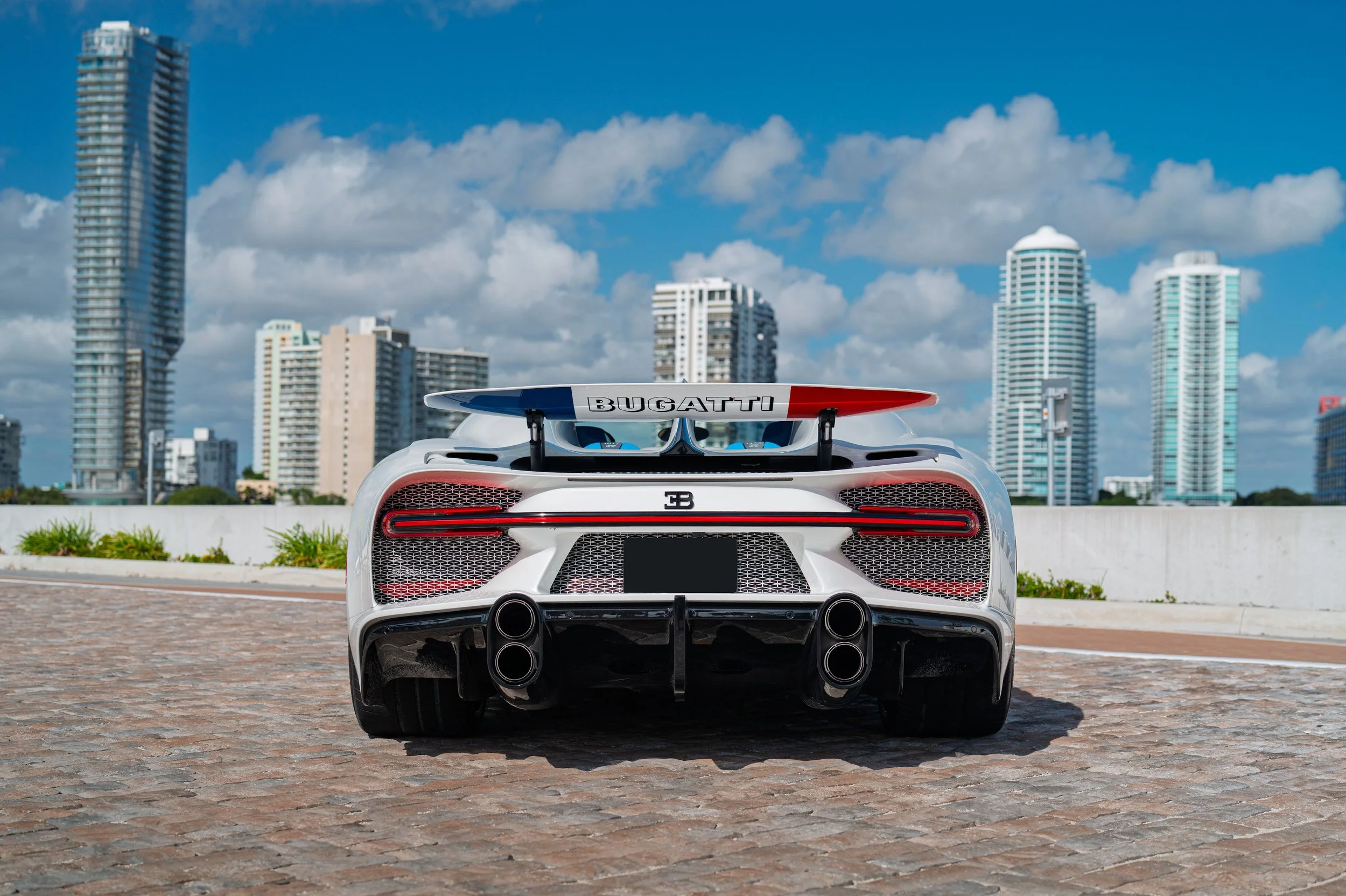 Livrée neuve au Canada, cette Chiron Supersport est une commande sur mesure avec une configuration plutôt originale avec un extérieur glacier White et un intérieur en French Racing Blue. Nommée Eléphant blanc, cette voiture se veut comme un hommage à la célèbre Bugatti Royale. Neuve, la voiture ne dispose que de 2750 miles au compteur.