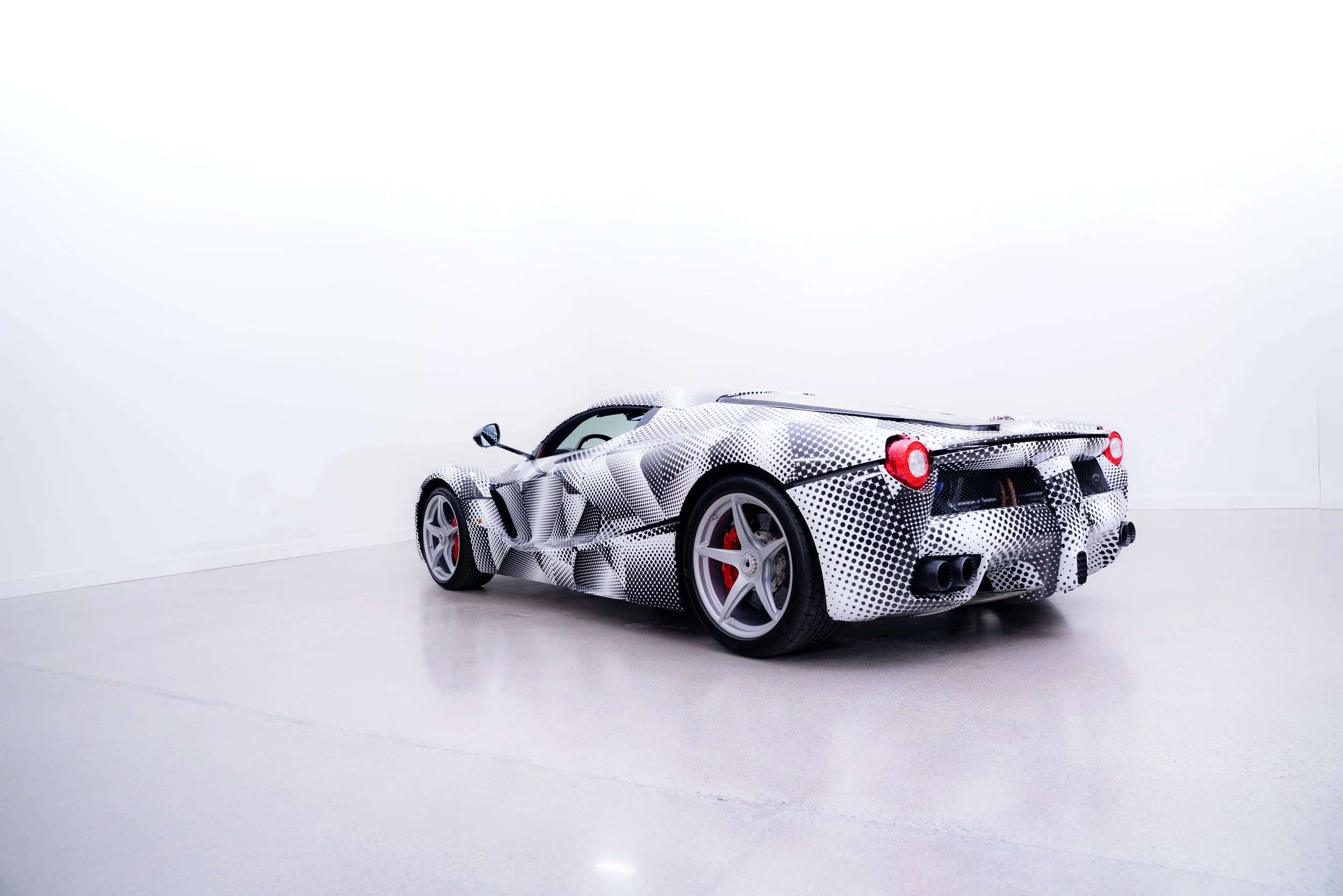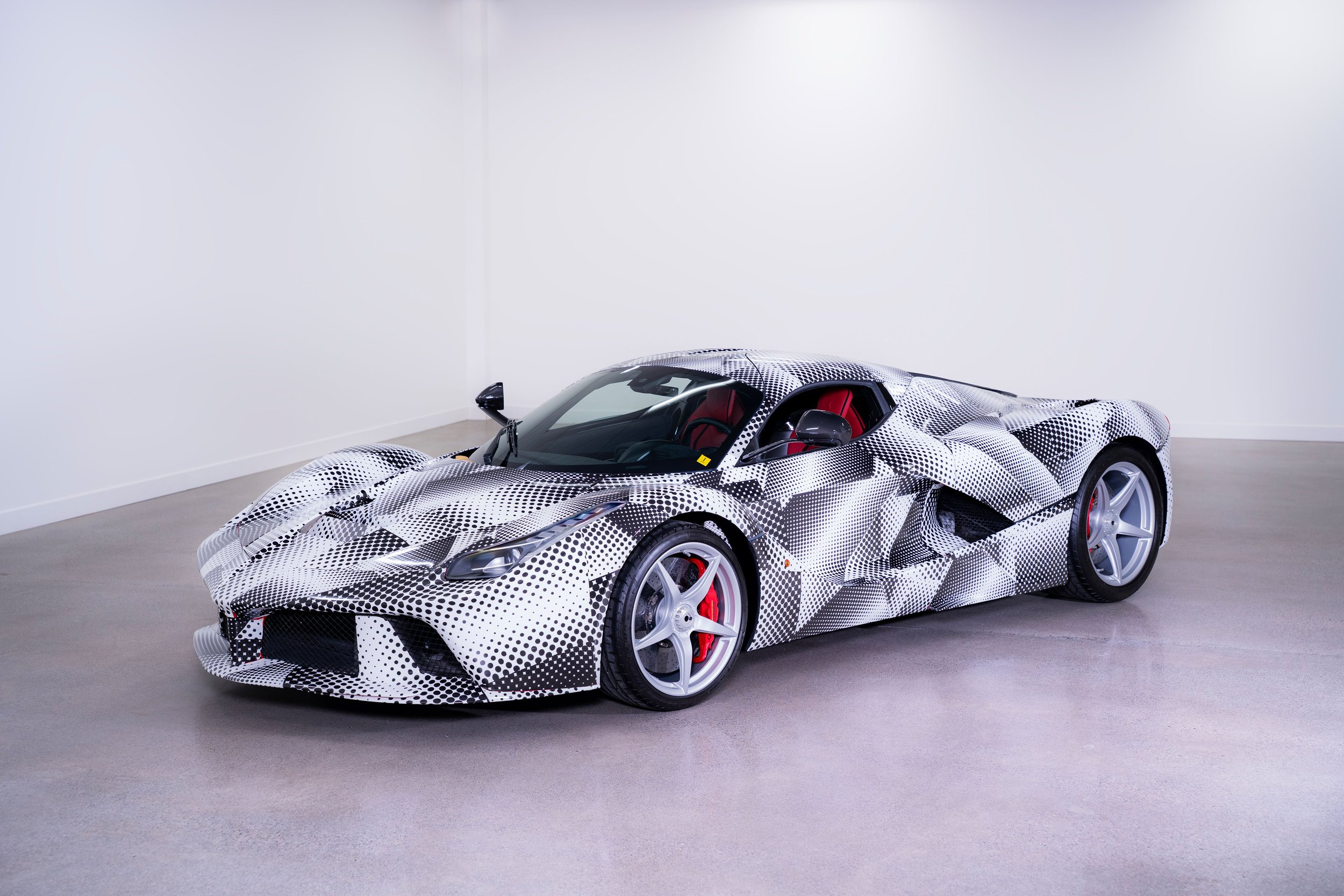 Offert pour la toute première fois au public, ce prototype LaFerrari “Proto F150 – P2” est présenté dans son camouflage officiel. En dessous de celui-ci, on retrouve une carrosserie mêlant quelques touches de Rosso et quelques pièces de carbone nu. L’intérieur est quant à lui recouvert de cuir rouge. Non homologué et non immatriculable, F150 – P2 est équipé du V12 atmosphérique de la Laferrari sans le système hybride HY-KERS. Il est donc vendu exclusivement pour collection et exposition.