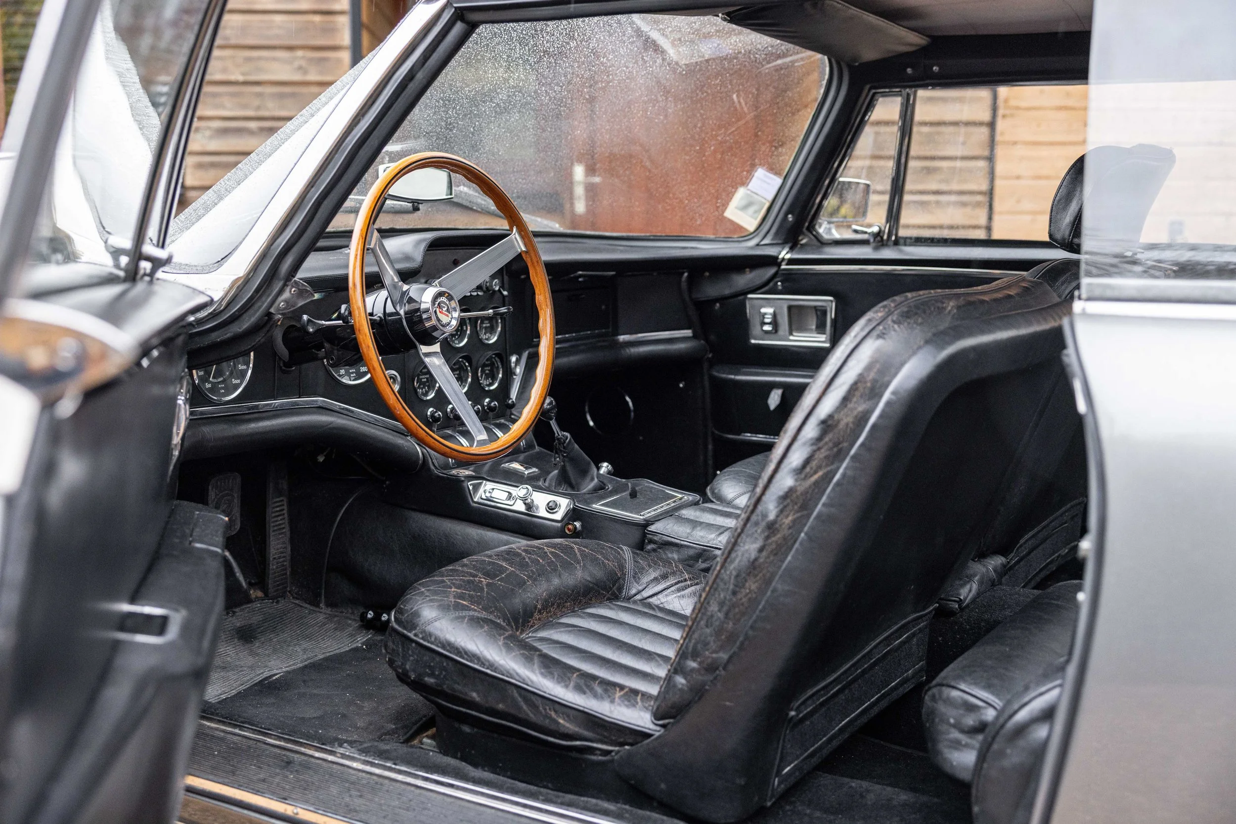 L’un des six seuls exemplaires Series V en conduite à gauche équipés du moteur Special Series (SS) d’usine, cet exemplaire fut livré neuf en France et appartient au même propriétaire depuis plus de 50 ans. Il s’agit d’une voiture matching numbers, présentée dans sa combinaison de couleurs d’origine et dont le moteur a été refait il y a une dizaine d’années. Les DB4 Series V, dernières évolutions du modèle, combinent les performances du célèbre six‑cylindres Tadek Marek et l’élégance intemporelle de la carrosserie Touring Superleggera.