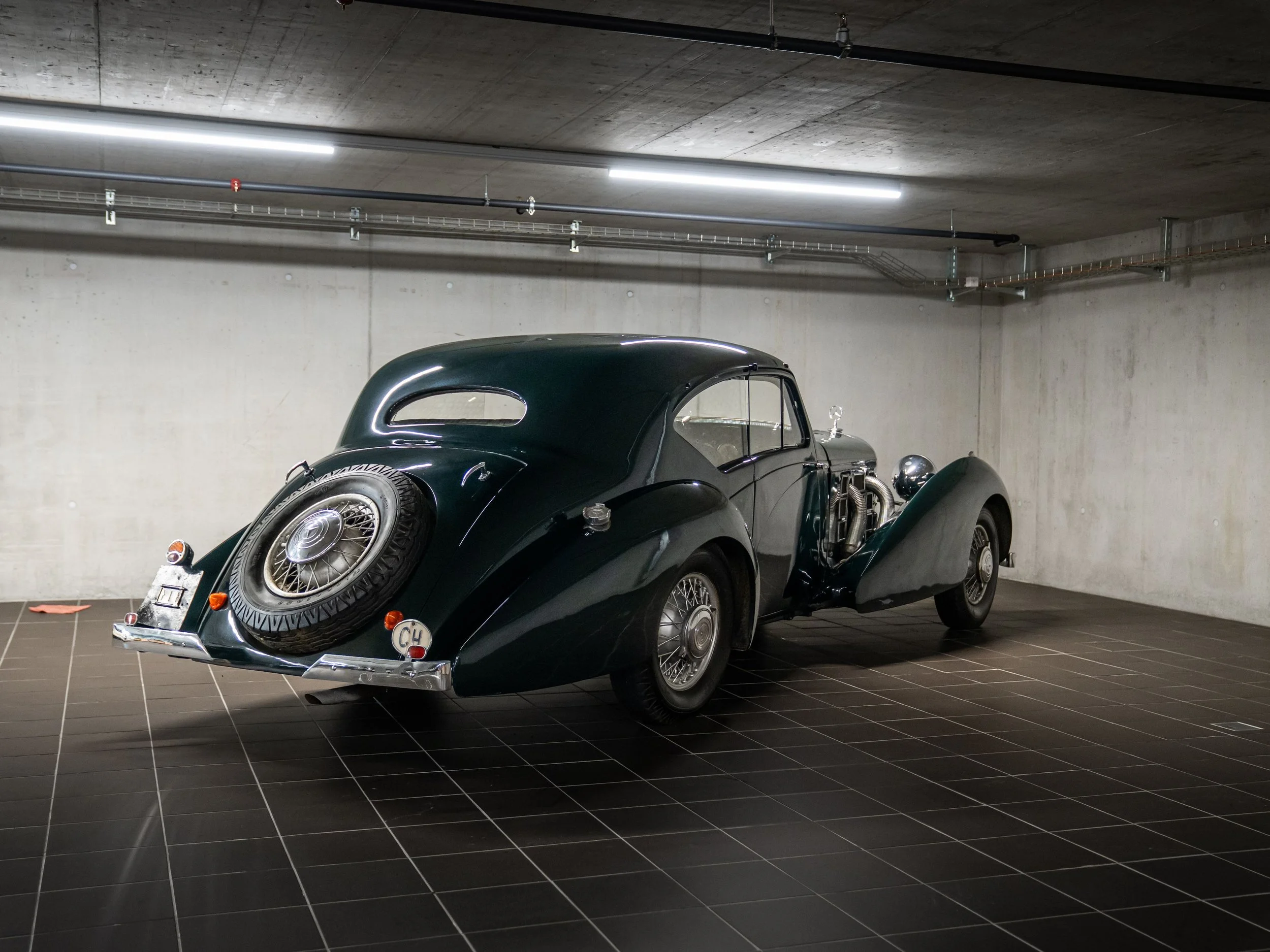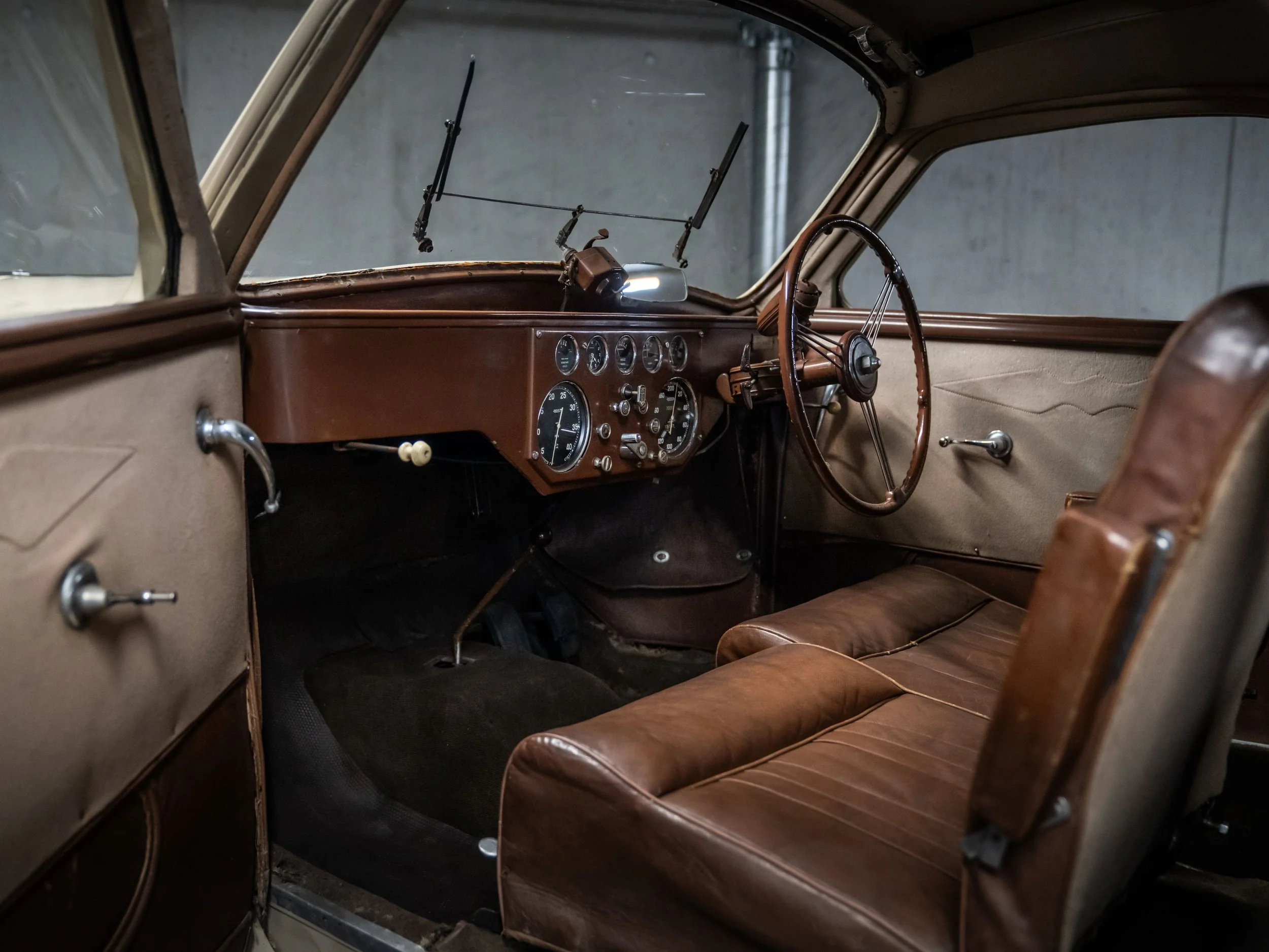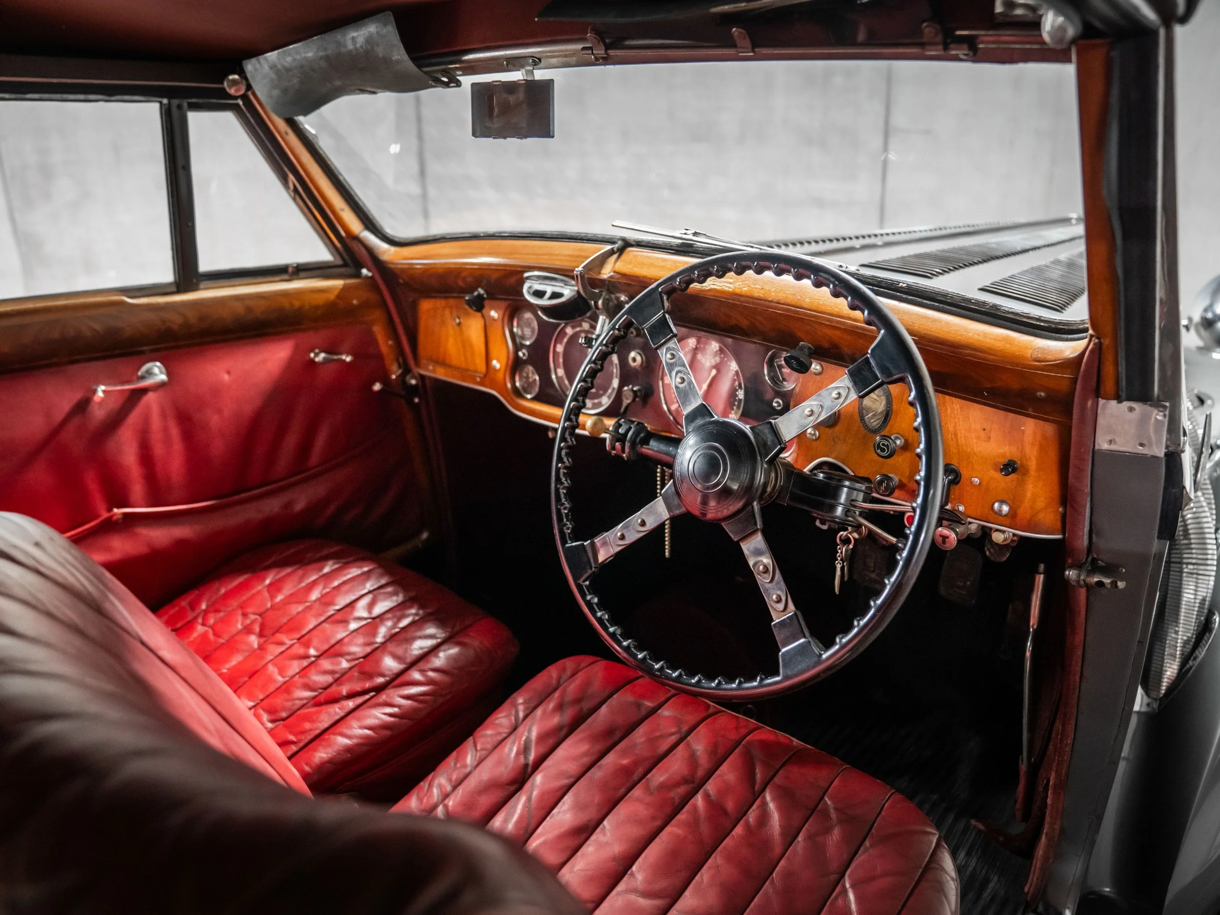 Coupé unique carrossé par Vanvooren, cet exemplaire est l’un des 18 seuls coupés W29 produits et fait partie du très petit nombre habillé par un carrossier français. Livré neuf à Paris en novembre 1934, il présente des numéros concordants et est resté dans la même famille depuis 1959, ayant même été exposé au Musée Jean Tua à Genève. Considéré comme remarquablement original, il conserve son caractère authentique, avec sa carrosserie Vanvooren n°2933 et son moteur d’origine. Véritable icône de l’âge d’or Mercedes, ce 500K incarne l’élégance et la puissance du célèbre modèle à compresseur.