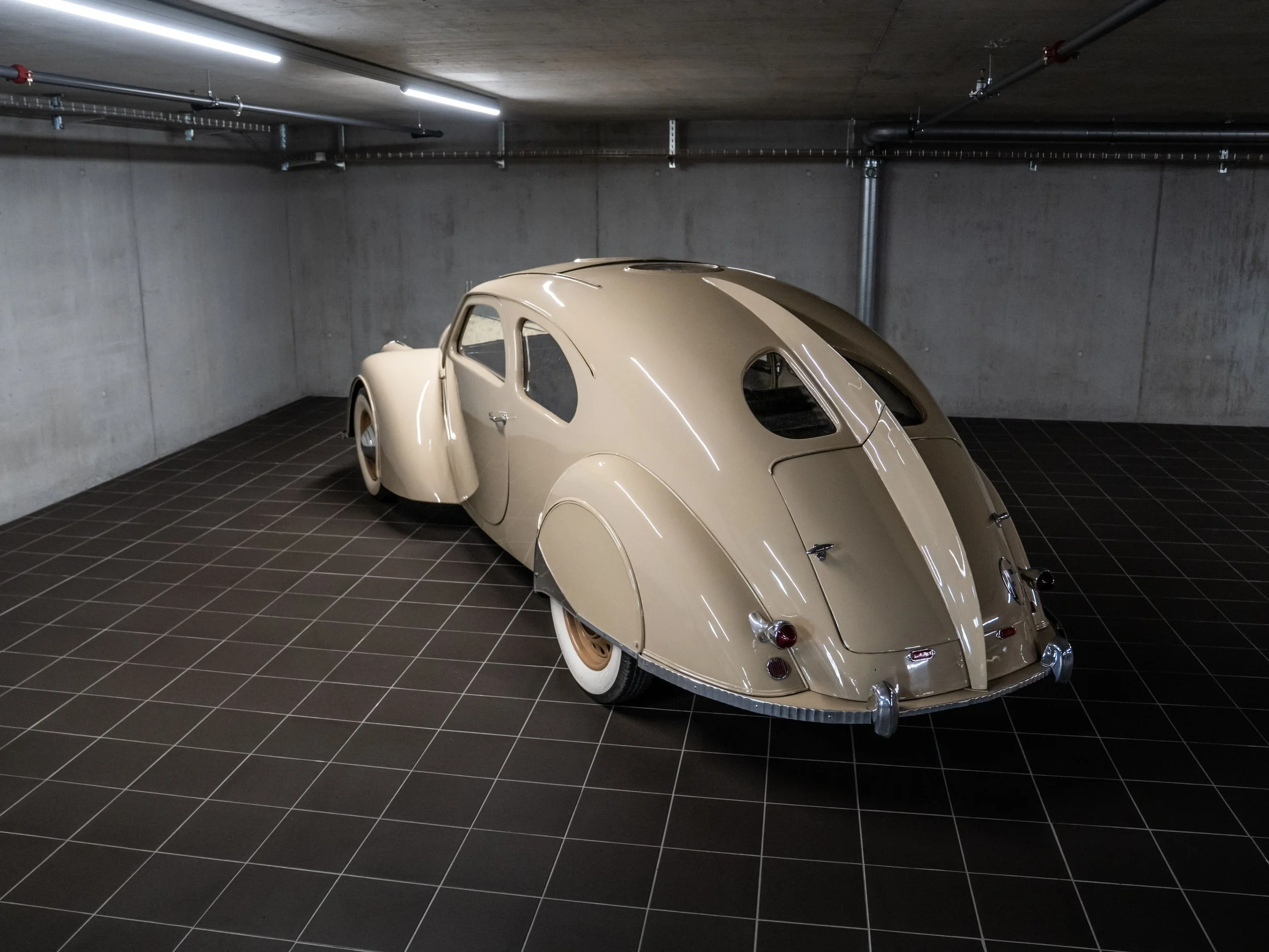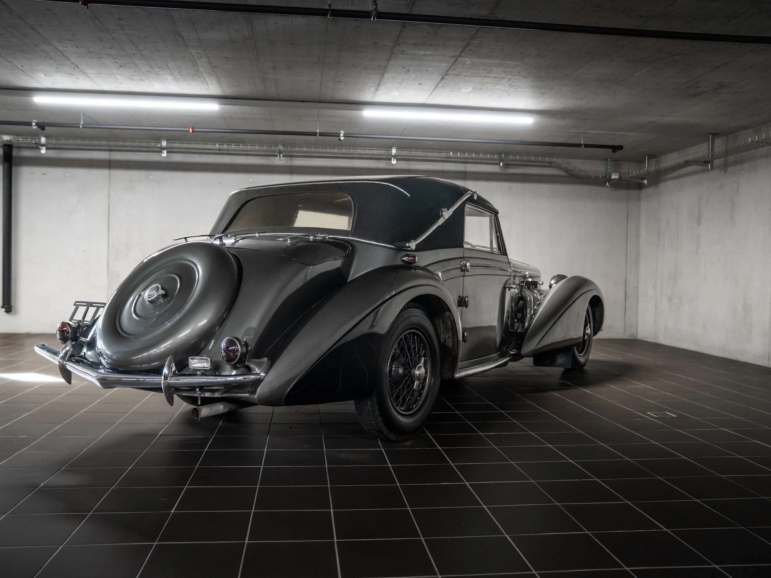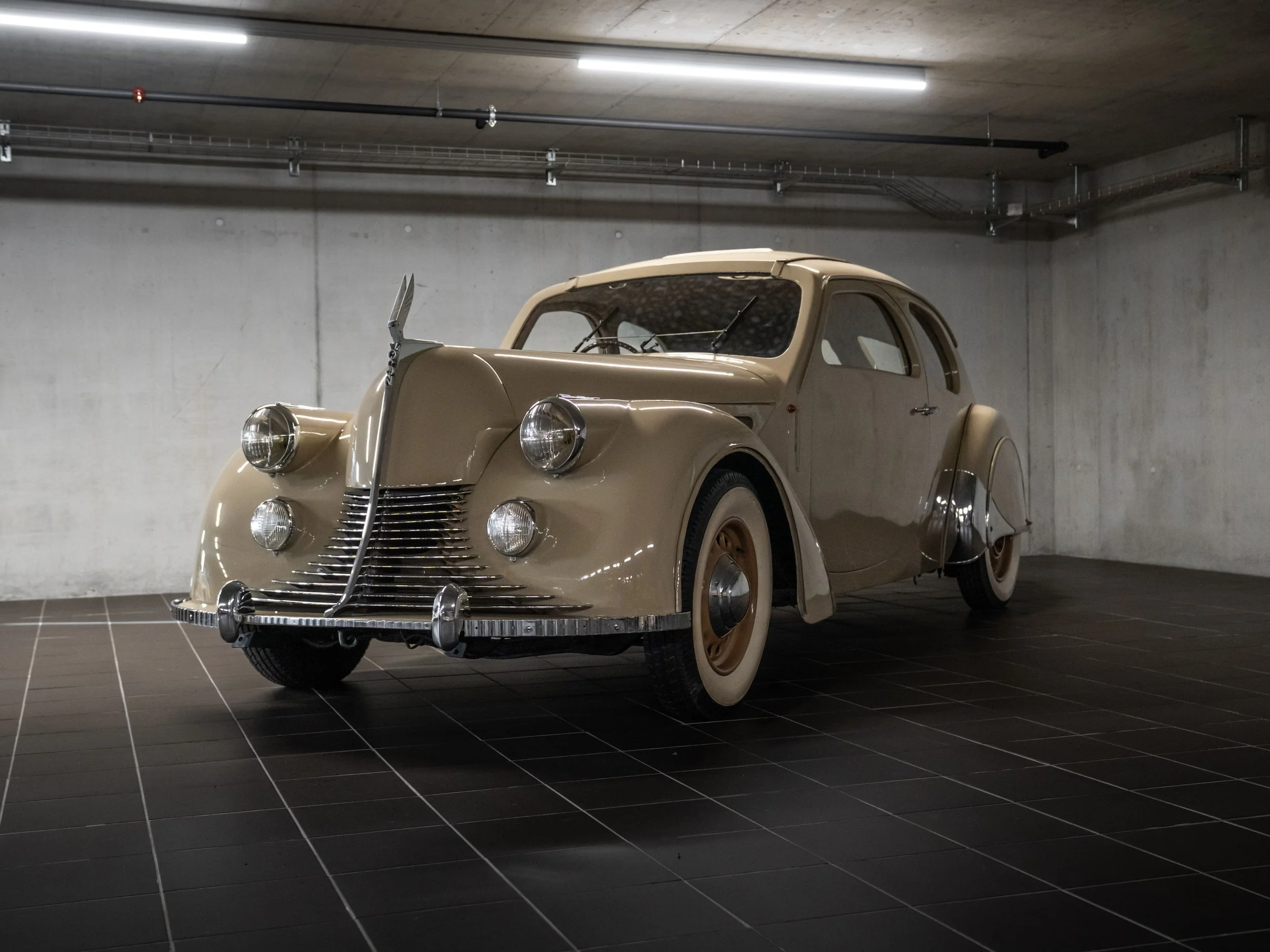 Coupé unique carrossé par Vanvooren, cet exemplaire est l’un des 18 seuls coupés W29 produits et fait partie du très petit nombre habillé par un carrossier français. Livré neuf à Paris en novembre 1934, il présente des numéros concordants et est resté dans la même famille depuis 1959, ayant même été exposé au Musée Jean Tua à Genève. Considéré comme remarquablement original, il conserve son caractère authentique, avec sa carrosserie Vanvooren n°2933 et son moteur d’origine. Véritable icône de l’âge d’or Mercedes, ce 500K incarne l’élégance et la puissance du célèbre modèle à compresseur.