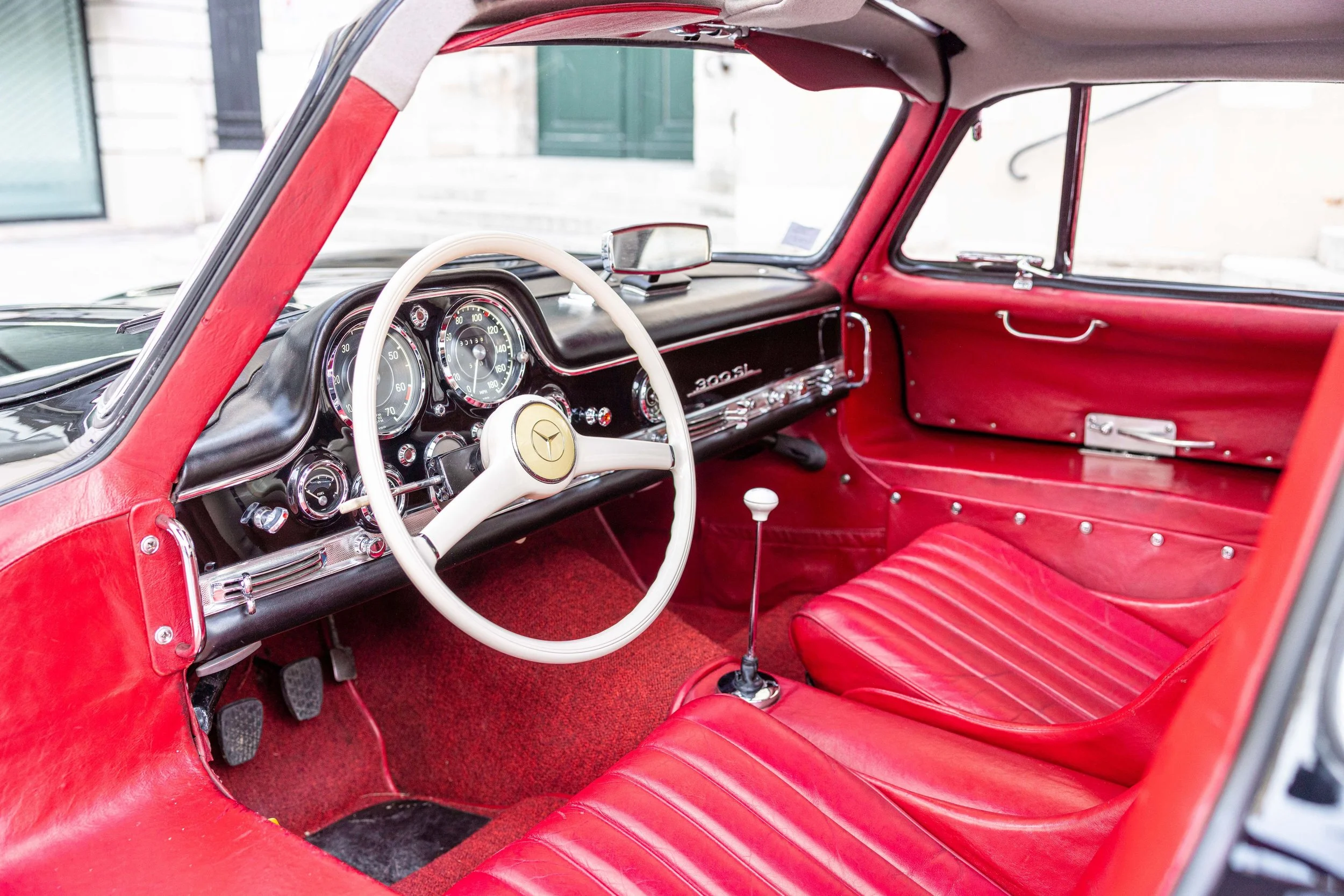 Exemplaire matching chassis, engine & body, livré neuf aux États‑Unis avant son retour en Europe en 1980. Restaurée avec soin dans les années 1990, elle est entretenue depuis 2011 par un spécialiste français reconnu des 300 SL. Equipée dès l’origine de la rare démultiplication longue (1:3.42) permettant plus de 160 mph, elle présente toutes les caractéristiques recherchées des Gullwing authentiques : carrosserie aluminium/acier, châssis spaceframe et injection mécanique Bosch. Maintenue méticuleusement et conservée dans un très bel état, elle constitue un exemplaire particulièrement désirable du modèle emblématique de Mercedes‑Benz.
