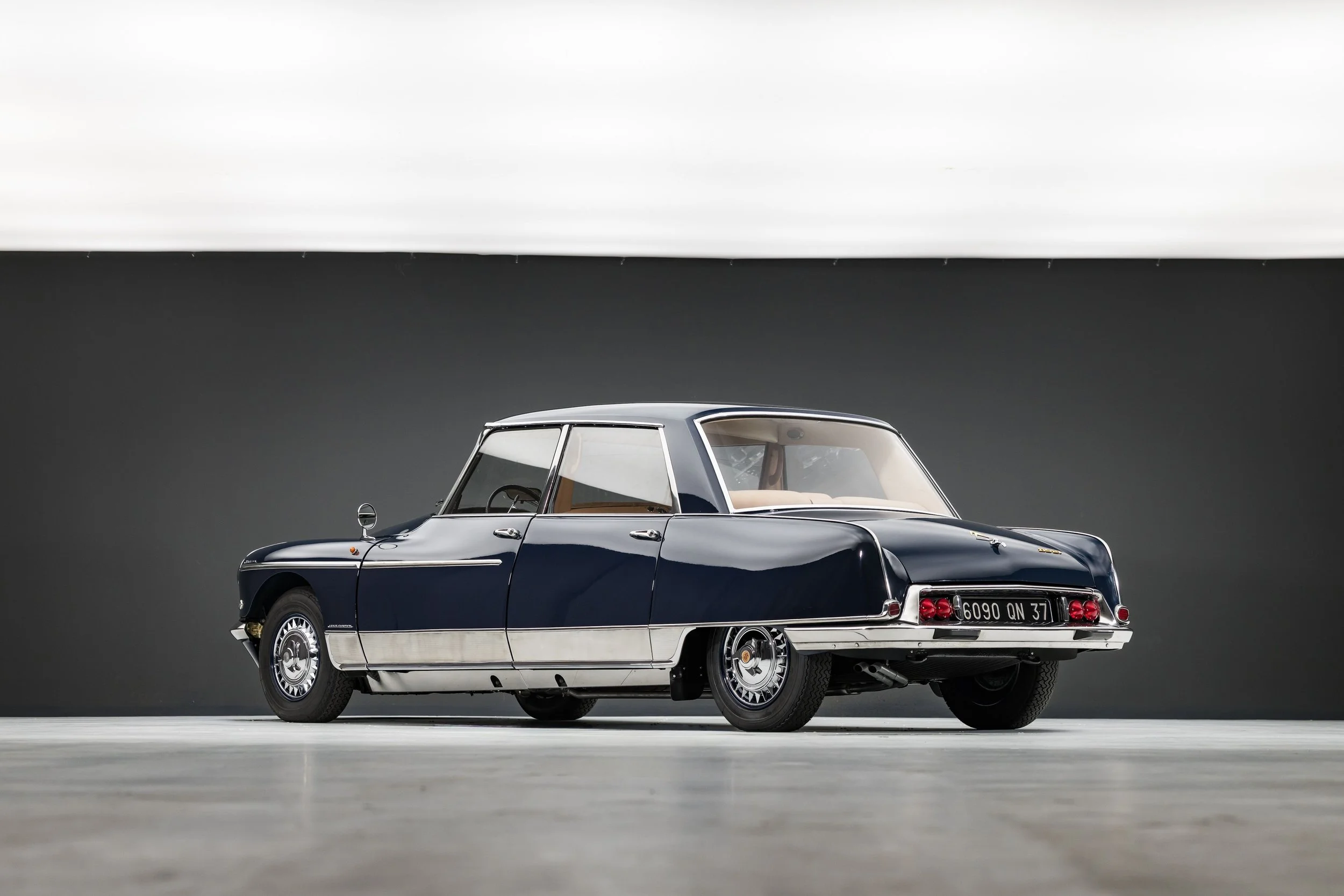 L’une des 27 Citroën DS21 “Majesty” construites par Henri Chapron, cette berline ultra‑rare fut commandée directement en juillet 1966 par Simone Fournier, belle‑fille du carrossier, et livrée le 10 novembre 1966. Conservée de longues années au sein de la famille Chapron, elle possède une provenance exceptionnelle. Dotée de la très rare cloison intérieure chauffeur / passagers, elle a bénéficié d’une restauration intégrale sans compromis, avec révision complète des organes mécaniques. Présentée dans une élégante livrée bleue avec intérieur beige cuir‑tissu, elle est accompagnée d’un certificat d’authenticité de Noëlle Chapron.