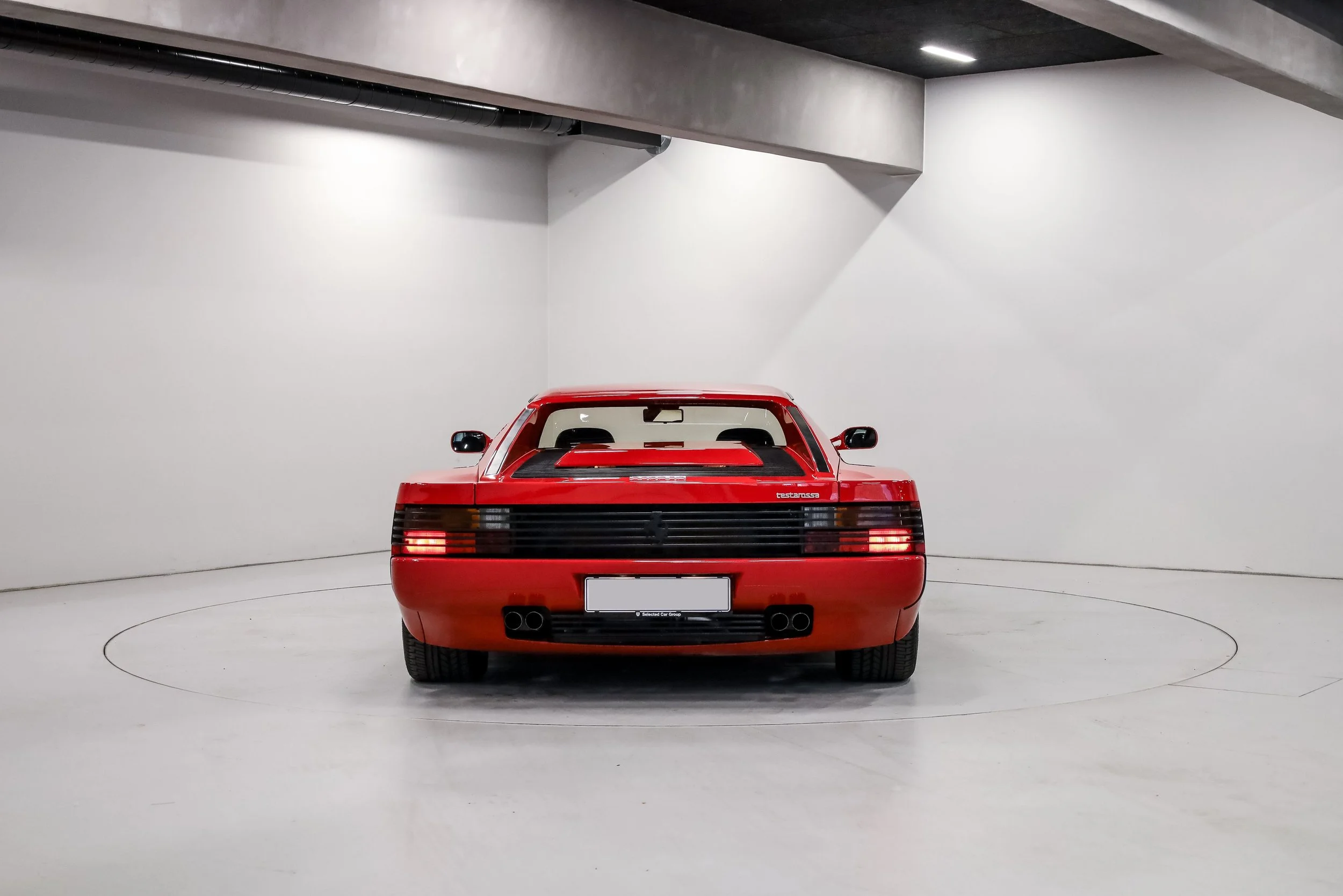 Livrée neuve en Europe puis immatriculée récemment au Danemark, cette Testarossa totalise 36 283 km et bénéficie du très recherché Ferrari Classiche “Red Book” confirmant son authenticité. Présentée dans l’emblématique Rosso Corsa avec spoiler avant et bas de caisse satin‑noir, elle a reçu d’importants soins mécaniques et esthétiques, dont une repeinture complète en 2023. Son intérieur en cuir noir, ses jantes cinq branches de 16” chaussées de Michelin Pilot Sport et son état général très soigné témoignent d’un exemplaire particulièrement bien préservé. Le vendeur ne rapporte aucun défaut mécanique ou électrique, faisant de cette Testarossa un choix idéal pour rouler ou enrichir une collection dédiée aux supercars italiennes.