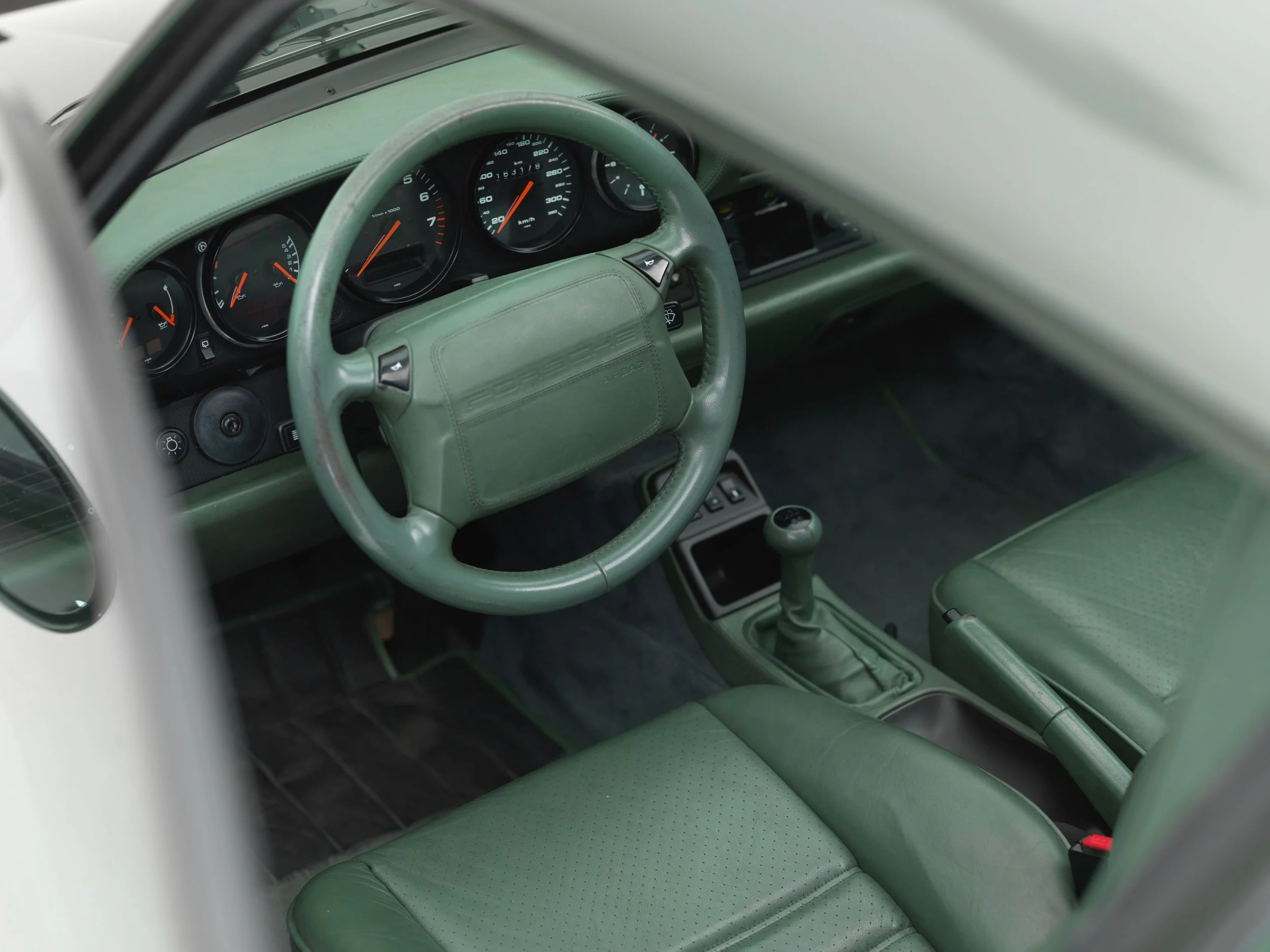 Moins de 1 500 exemplaires de la 964 Turbo 3.6 ont été produits, faisant de ce modèle l’un des plus rares et recherchés de la lignée Turbo. Cet exemplaire-ci est encore plus exclusif : il serait l’un des trois seulement configurés dans cette combinaison de couleurs. N’ayant connu que deux propriétaires depuis neuf, dont le premier pendant 27 ans, il se présente dans un état exceptionnellement original, conforme à l’usine, et totalise environ 163 200 km. Livré neuf en Allemagne puis enregistré en Belgique, il bénéficie d’un historique d’entretien complet, gage d’un suivi méticuleux.