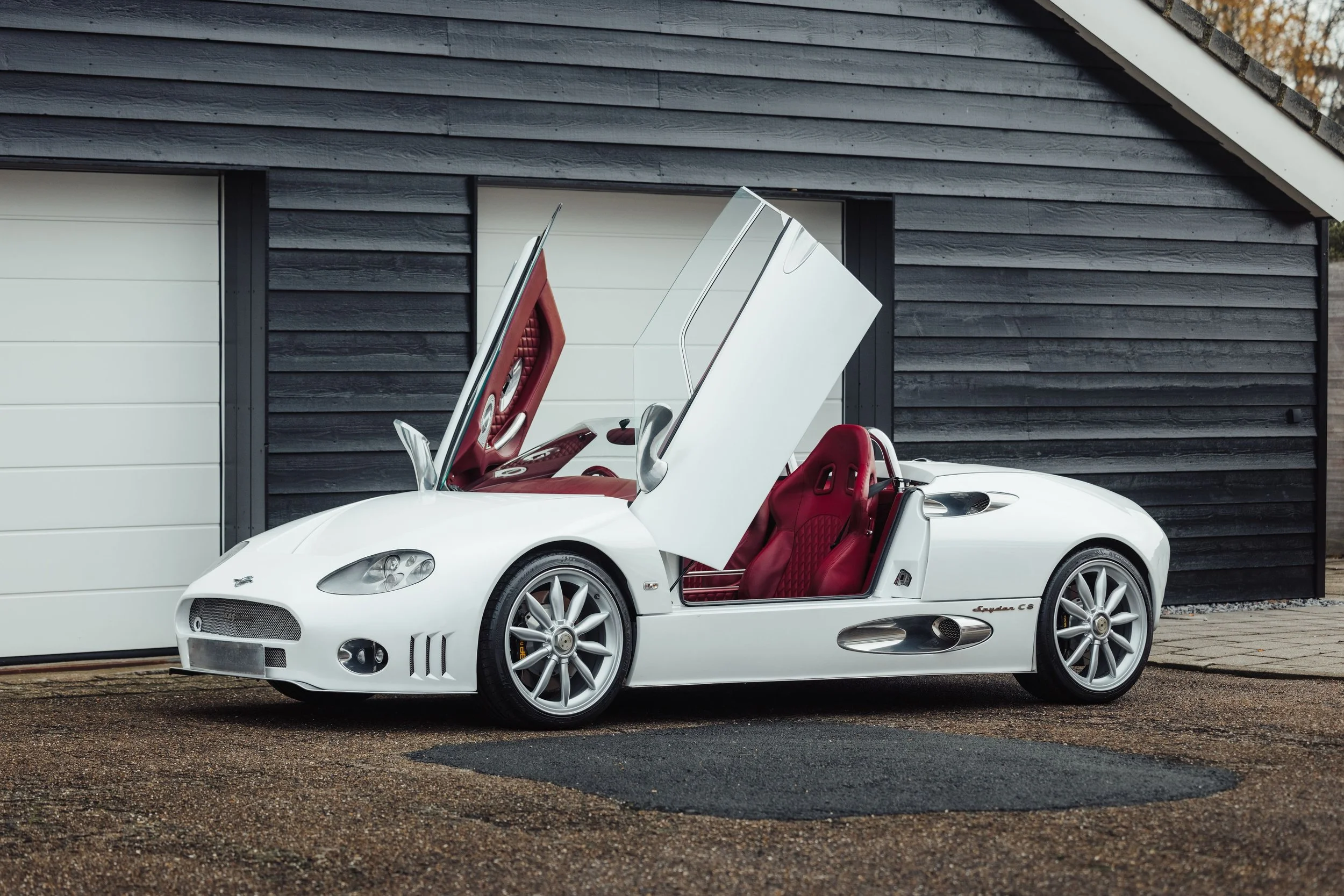 Véritable pièce de collection, cet exemplaire est la toute première Spyker C8 Spyder client en conduite à droite, présentée dans une couleur unique (Lamborghini Balloon White) et totalisant seulement 73 miles depuis l’origine, ce qui en fait le RHD le moins kilométré connu. Propulsée par le plus puissant V8 Audi S8 et dotée d’options d’usine recherchées (sellerie quiltée, jantes 19”, volant “propeller”), cette supercar néerlandaise se distingue par son exclusivité extrême. Conservée d’abord par la Spyker Factory, puis par un spécialiste réputé de la marque, elle a bénéficié récemment d’un entretien incluant réservoir et courroie de distribution. Accompagnée d’un titre allemand, elle constitue un exemplaire d’une rareté exceptionnelle.