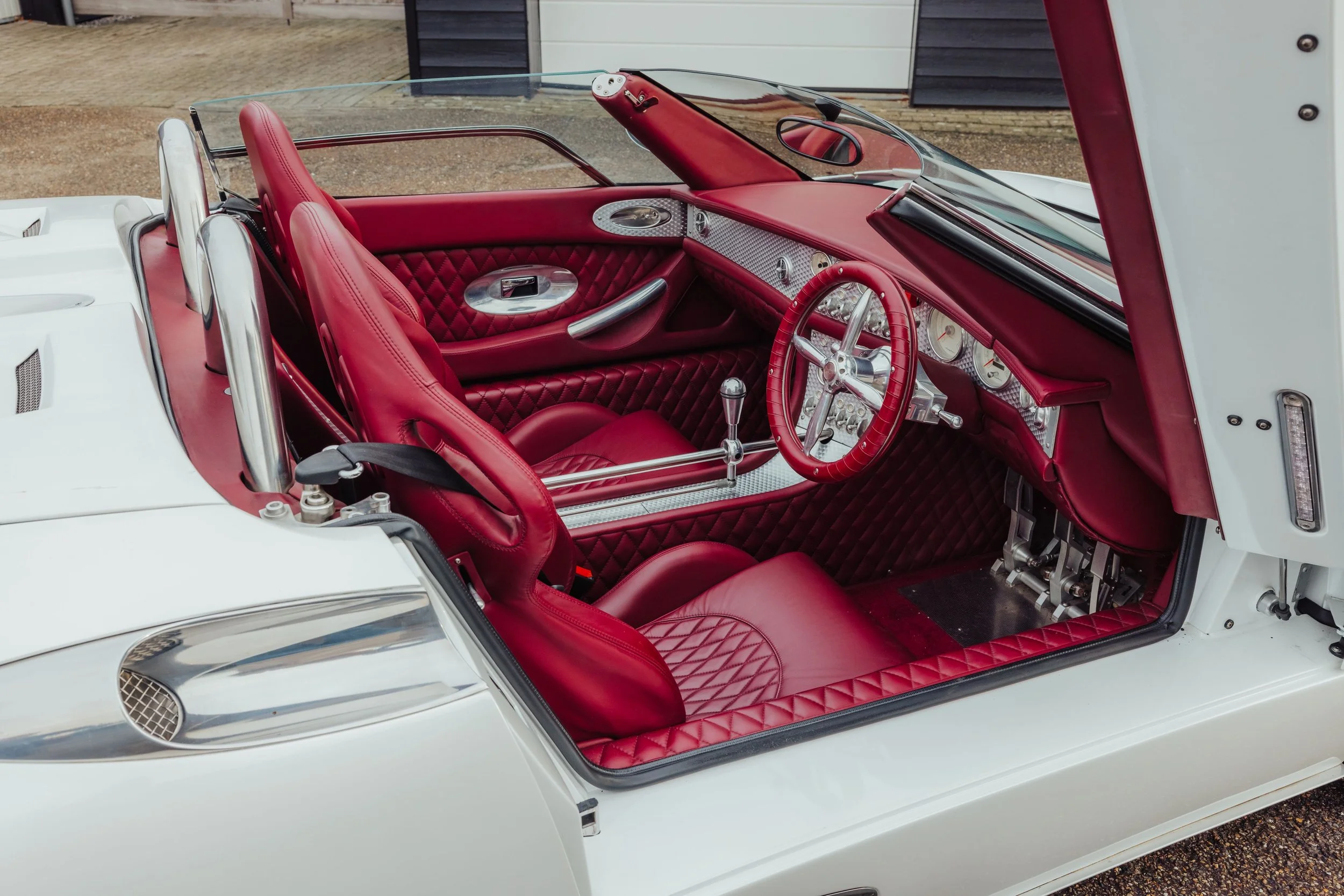 Cette Thomas Special est un exemplaire unique carrossé par Ghia, animé par un V8 Hemi 5,4 L, et issue de la collaboration Chrysler–Ghia des années 1950. Elle a bénéficié d’une ancienne restauration réalisée notamment par le célèbre restaurateur Fran Roxas, reconnue pour son niveau d’excellence. L’auto a fait partie de la prestigieuse Bortz Auto Collection, spécialisée dans les concept‑cars et prototypes américains des années 50‑60.