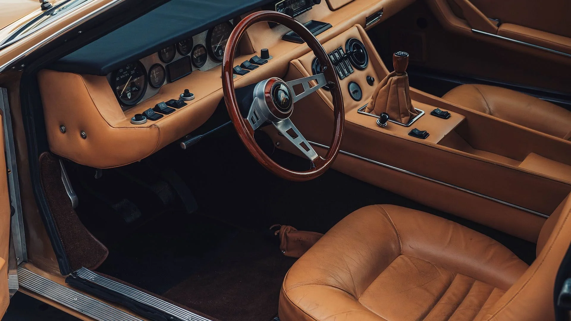 124ᵉ exemplaire sur 177 produits entre 1970 et 1972, la Jarama 400 GT représente la dernière évolution des GT 2+2 V12 voulues par Ferruccio Lamborghini. Elle est présentée dans une teinte cuivre d’époque restaurée, associée à un intérieur beige. Vendue neuve en France via l’importateur Voitures Paris Monceau, elle conserve ses phares jaunes d’origine, détail très apprécié des collectionneurs européens. Affiche un peu plus de 68 000 km, kilométrage considéré comme d’origine, et a bénéficié d’une restauration approfondie sous l’actuel propriétaire. Elle constitue la dernière itération de la lignée GT front‑engine 2+2 de Lamborghini, dessinée par Marcello Gandini et assemblée chez Carrozzeria Marazzi.