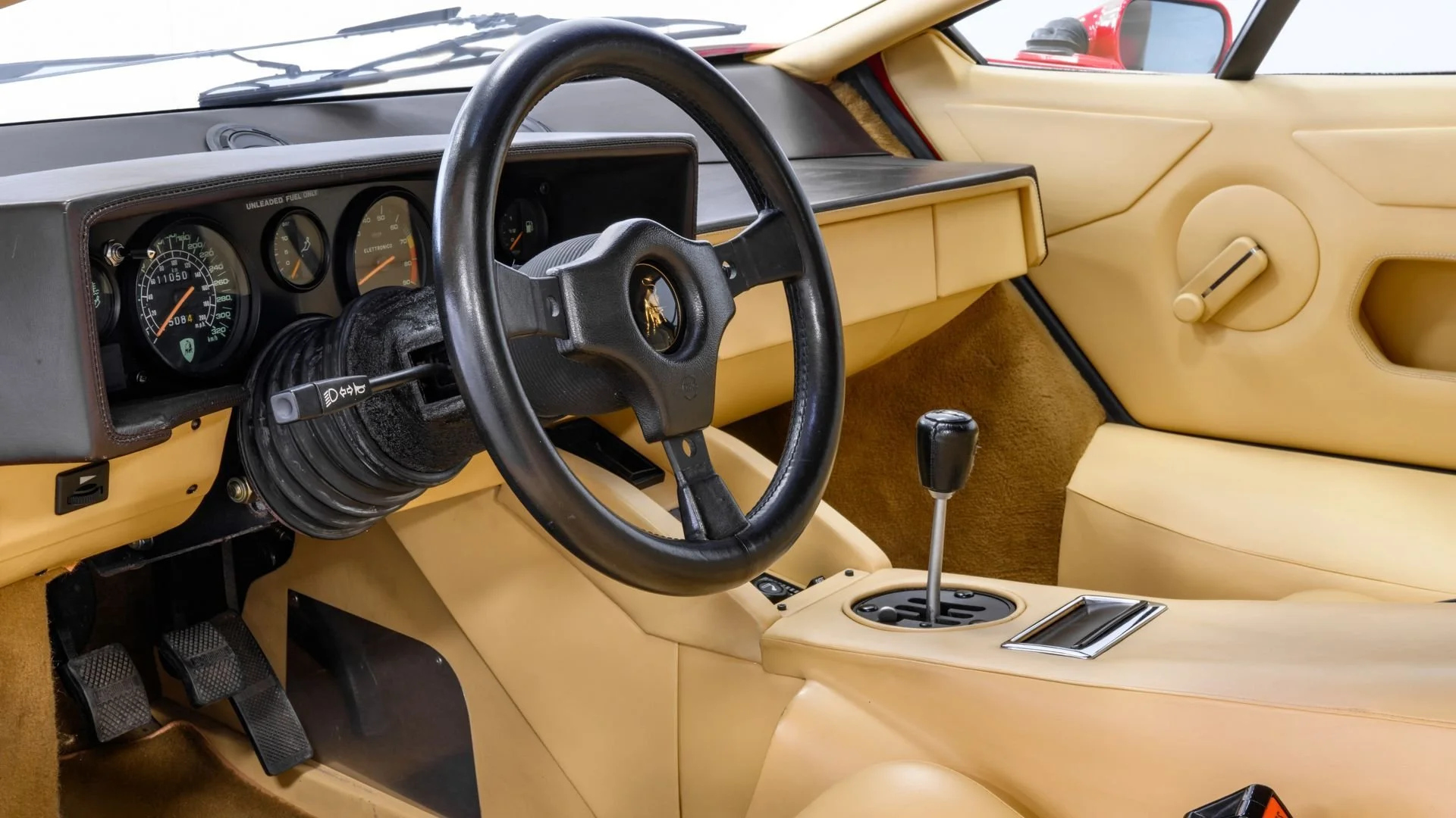 Rareté absolue parmi les Countach, cet exemplaire fait partie des 66 versions “Iniezione” à injection Bosch, reconnaissables à leurs doubles bossages sur le capot moteur. Livrée neuve en Suisse et restée longtemps entre les mains d’un propriétaire helvétique, elle totalise un peu plus de 11 000 km et bénéficie d’un suivi d’entretien détaillé, ainsi que d’un certificat d’origine Lamborghini Polo Storico. Habillée d’un superbe Rosso associé à un intérieur cuir Champagne, elle incarne l’une des itérations les plus abouties du modèle, animée par le V12 5,2 litres de 426 ch.