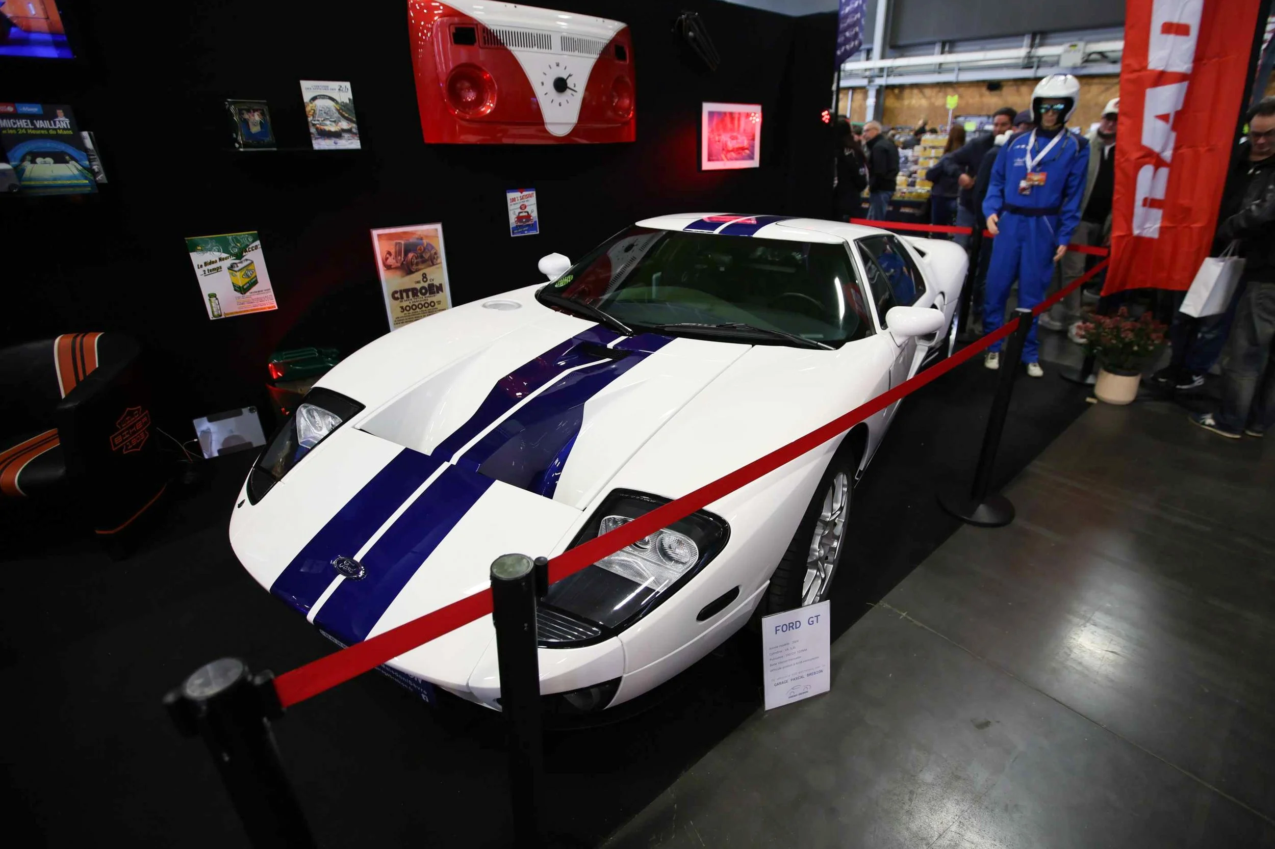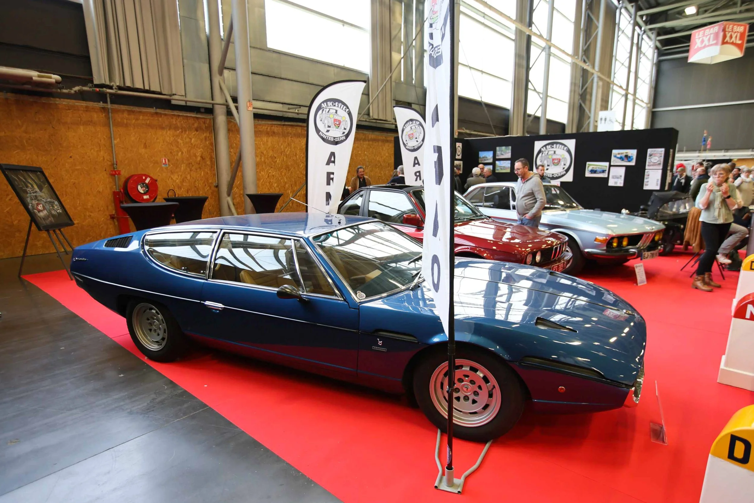 Au rayon des belles surprises, nous sommes tombés sous le charme de la Ford GT blanche et bleu. Chez les voitures anciennes, nous avons retenu une superbe Maserati Shamal jaune, une magnifique Lamborghini Espada bleue ainsi qu’une très rare Aston Martin DB4 Convertible rencontrées sur différents halls.