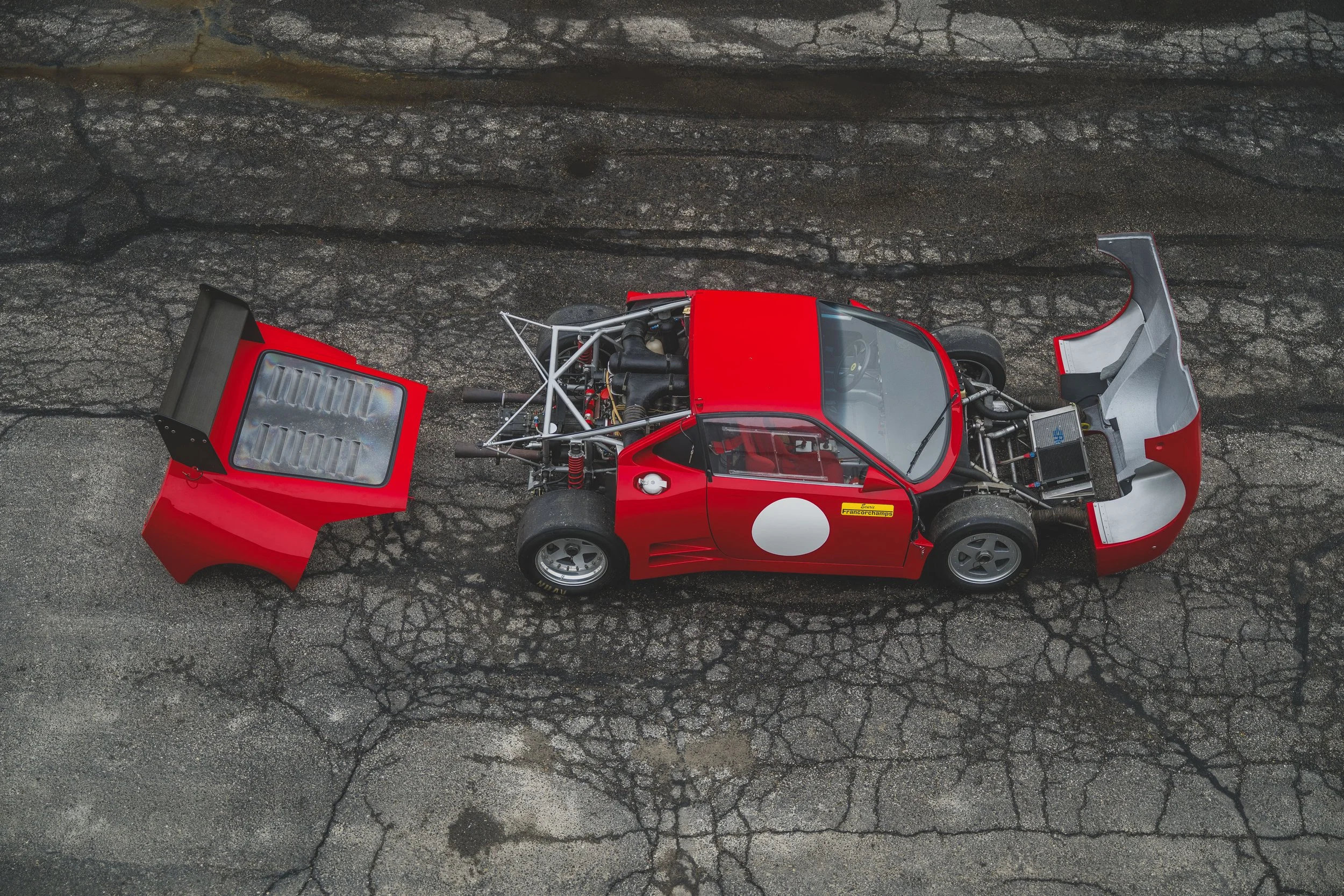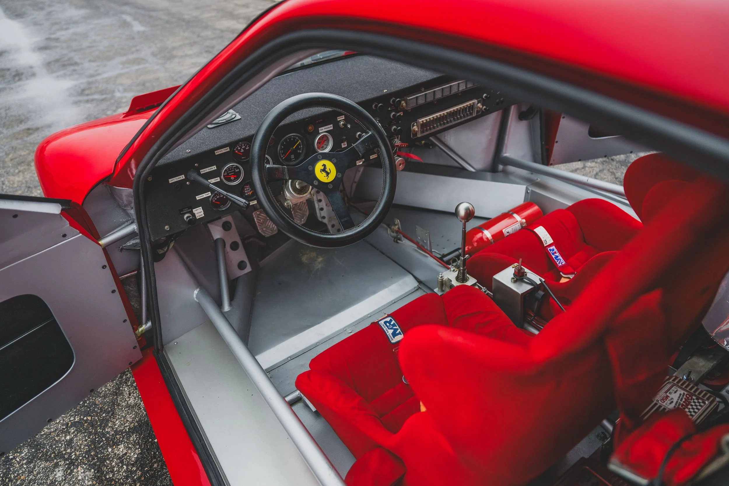 Au total, seuls trois exemplaires de la 308 GT/M ont été construits, faisant de la voiture un prototype extrêmement rare. Le châssis présenté ici, numéro 001, est le premier de cette courte série. Conçue comme voiture de développement, elle enregistre des chronos impressionnants sur la piste d’essai de Fiorano, signant des temps plus rapides que ceux de la 288 GTO, du 512 BB/LM et même de la future F40. Première Ferrari de course construite presque entièrement sous la direction de la famille Michelotto, la GT/M marque une étape fondamentale dans l’histoire du constructeur en compétition. Cet exemplaire est aujourd’hui équipé d’un moteur expérimental Tipo F105L, offrant la possibilité pour son futur propriétaire de le faire remettre en conformité originelle par Michelotto si souhaité.