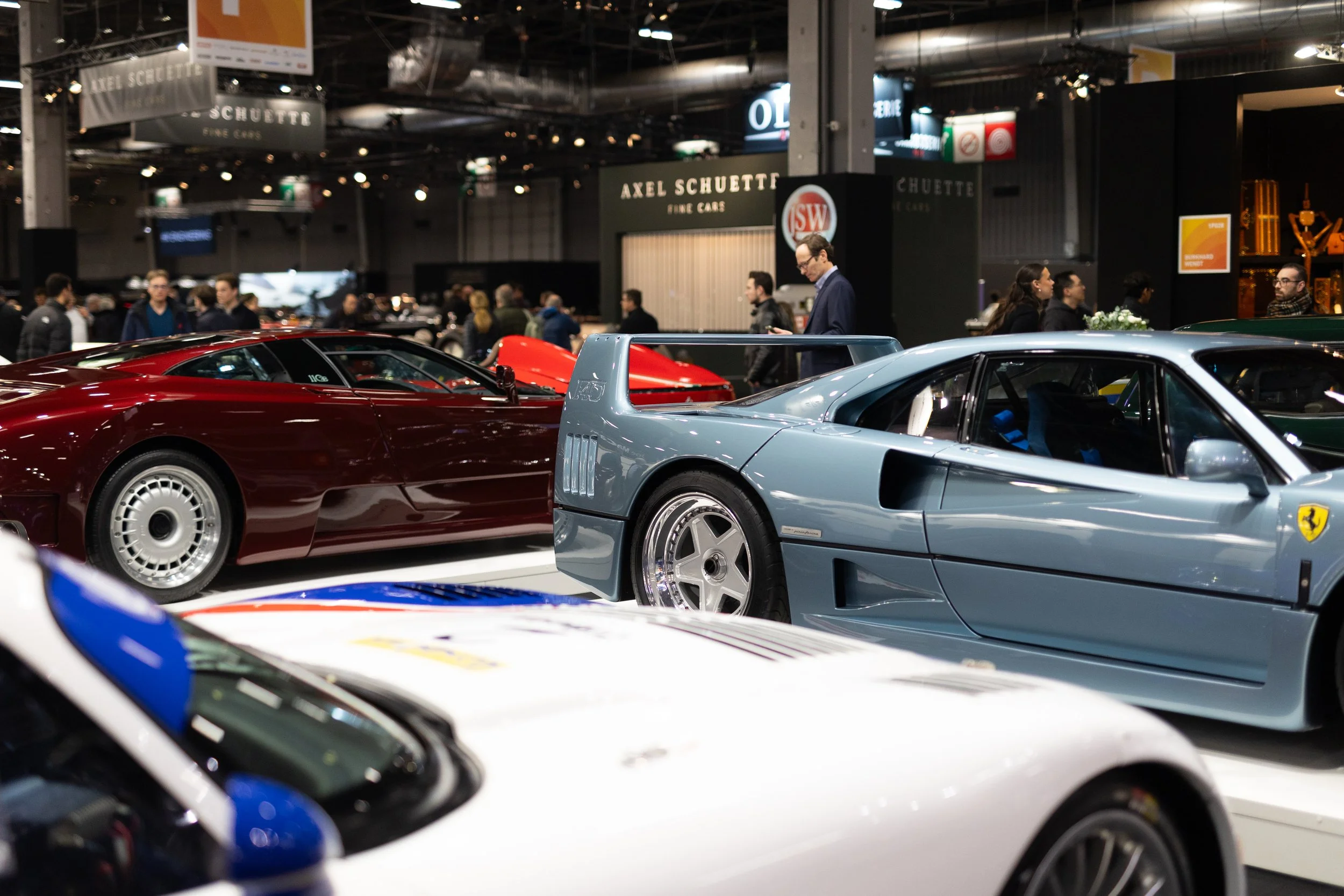 Plus loin, sur le sport de Sport & Collection, on retrouve la Ferrari 250 GT California Spyder LWB vendue quelques mois plus tôt lors de la vente aux enchères Monégasque de la W collection à Monaco. Vendue à 5 186 800€, ce modèle aurait trouvé preneur en France et fait sa deuxième apparition après celle de Chantilly. Autre stand qui valait le détour celui des Suédois de Daytona Automobiles. On y retrouve un duo de Mercedes-Benz exceptionnelles : une AMG One et une SLR Stirling Moss. A côté, un trio italien impressionnant : une Lamborghini Diablo GT et une Diablo 6.0 entourent une très belle Ferrari F40.