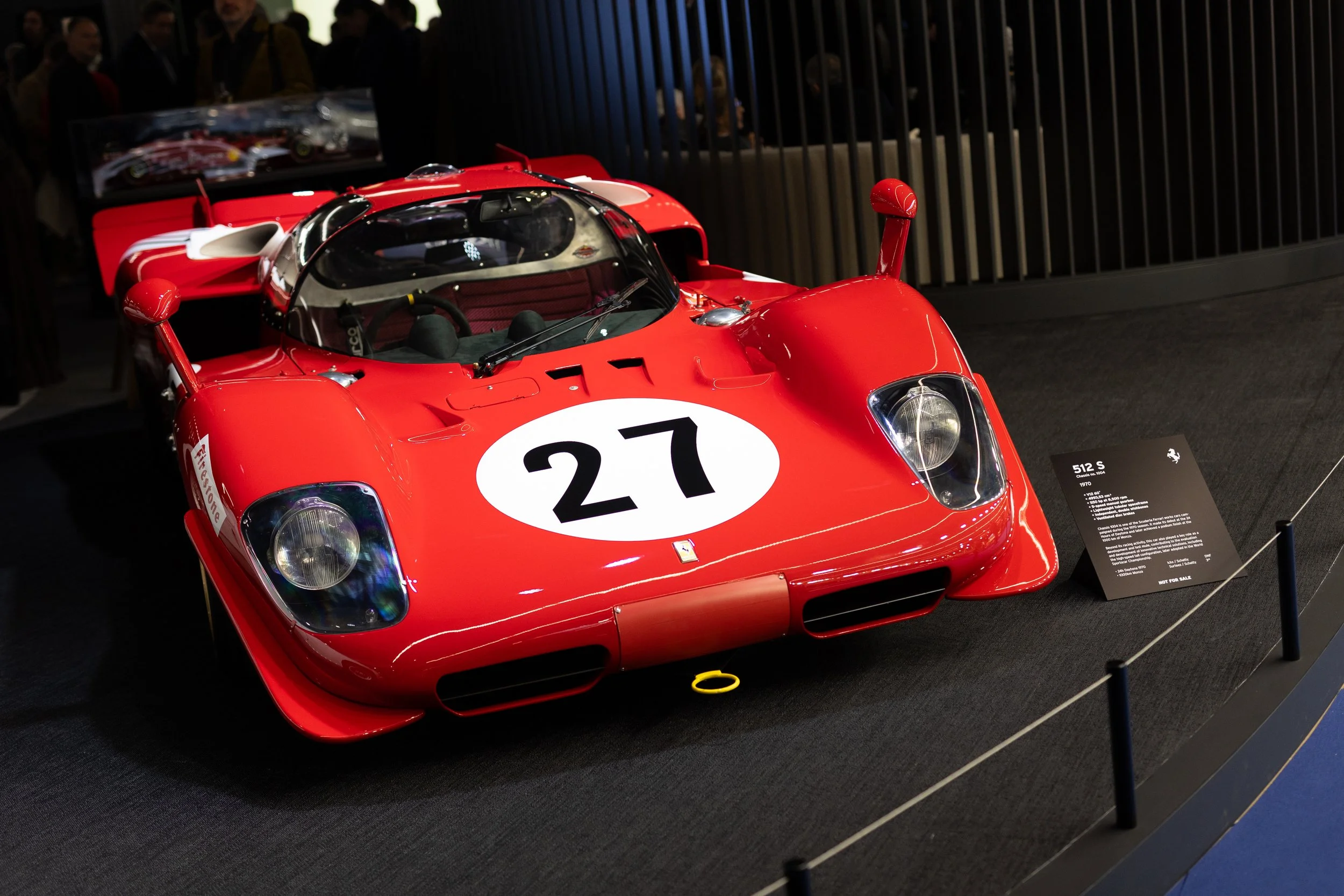 Richard Mille, célèbre horloger Français très fortement lié à l’automobile, a rassemblé un plateau de Ferrari tout à fait spectaculaire. Une superbe Ferrari 512S, châssis 1004, était présentée dans un superbe état concours. Engagée en compétition en 1970, elle a notamment concouru aux 24 Heures de Daytona et aux 1000Kms de Monza. A côté, une très belle Ferrari 275P, en cours de restauration, était mise en avant. Ce châssis, 0812, a été engagé à deux reprises aux 24 Heures du Mans en 1963 et 1964. Dans ces deux cas, elle n’a pas pu finir la course. Sa voisine ne nous est pas inconnue, il s’agit de la Ferrari 250 LM châssis 5893. L’an dernier elle a marqué les esprits en étant vendue plus de 30 millions d’euros à la vente RM Sotheby’s de Rétromobile. Triple participante aux 24 heures du Mans, elle est rentrée dans l’histoire en remportant l’édition 1965 de la classique Mancelle !