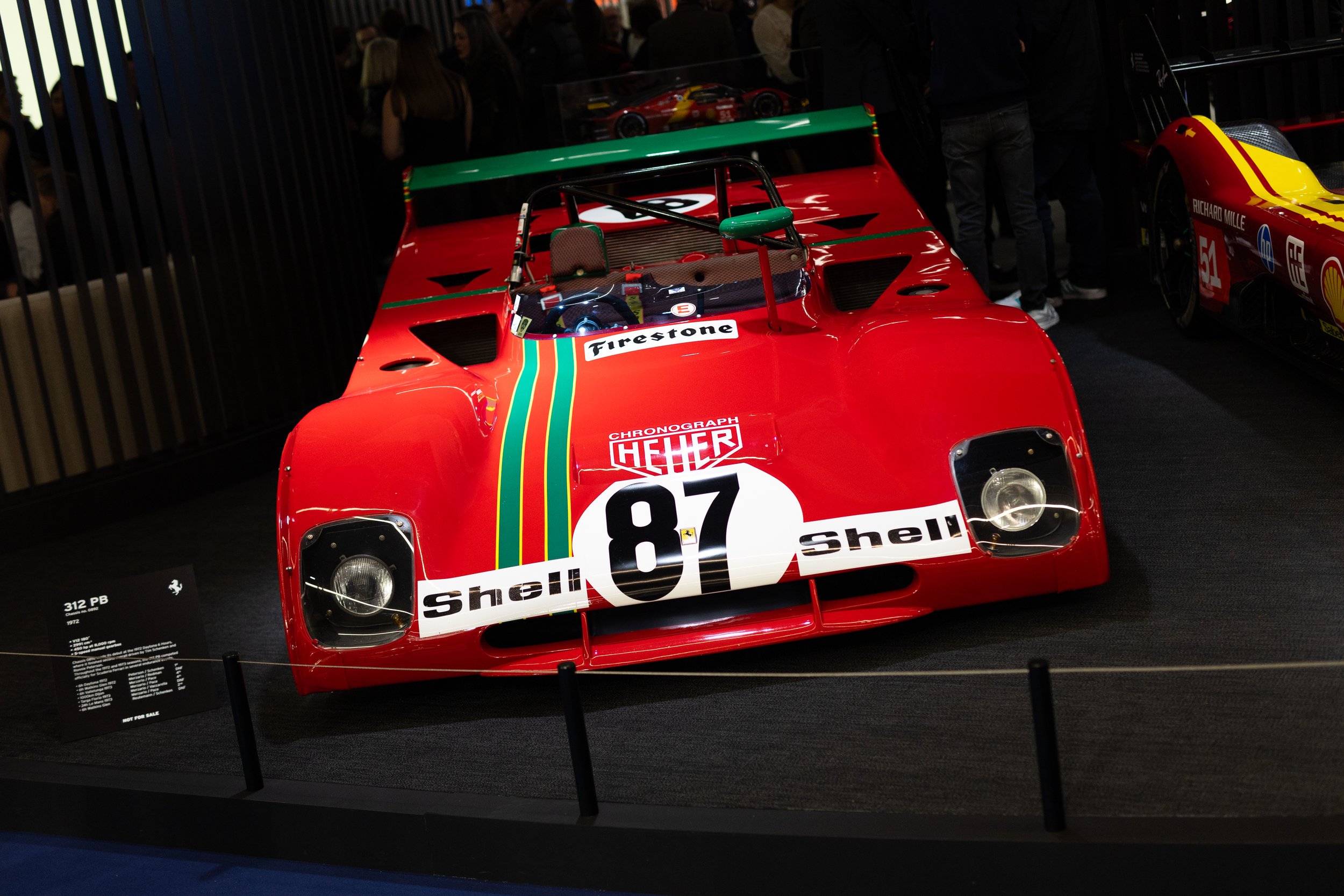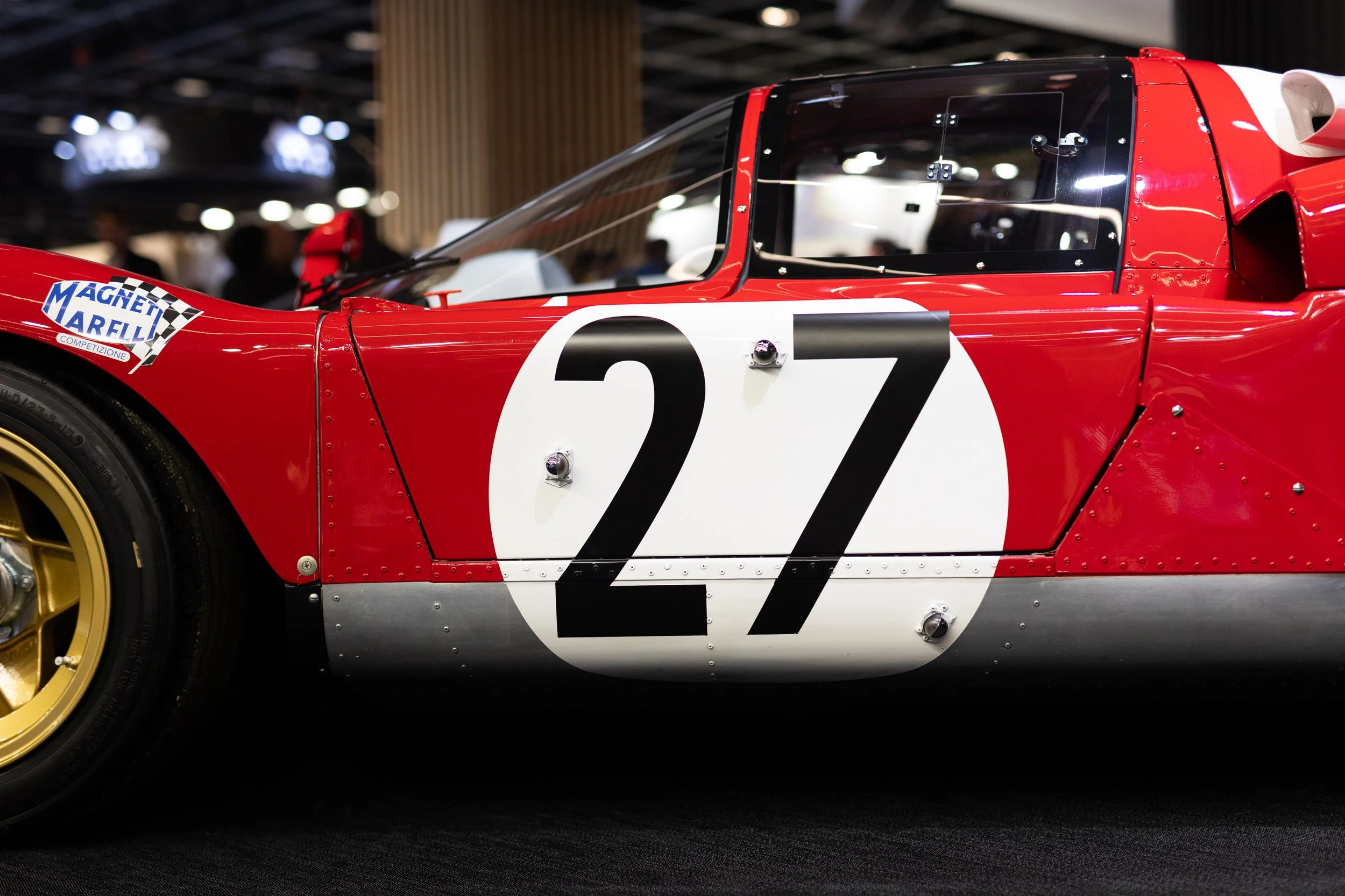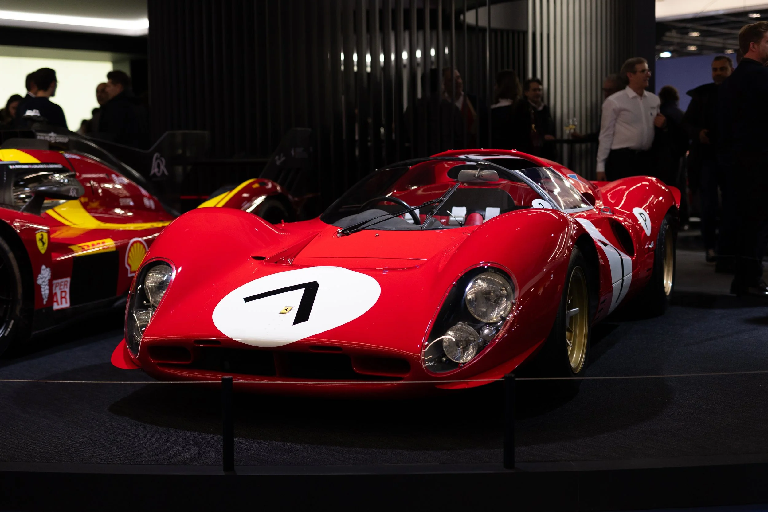 De l’autre côté du stand, on retrouve la Ferrari 312 PB châssis 0892, deuxième des 24 heures du Mans 1973 ! Elle côtoie la Ferrari 499P de 2025, troisième de la 93ème édition du tour d’horloge Sarthois. Enfin, juste à côté de cette superbe hypercar, trônait une véritable sculpture et oeuvre d’art automobile, une 330 P4. Le châssis présenté ici, 0856, a lui aussi un palmarès riche en compétition et a notamment fini deuxième de l’édition 1967.