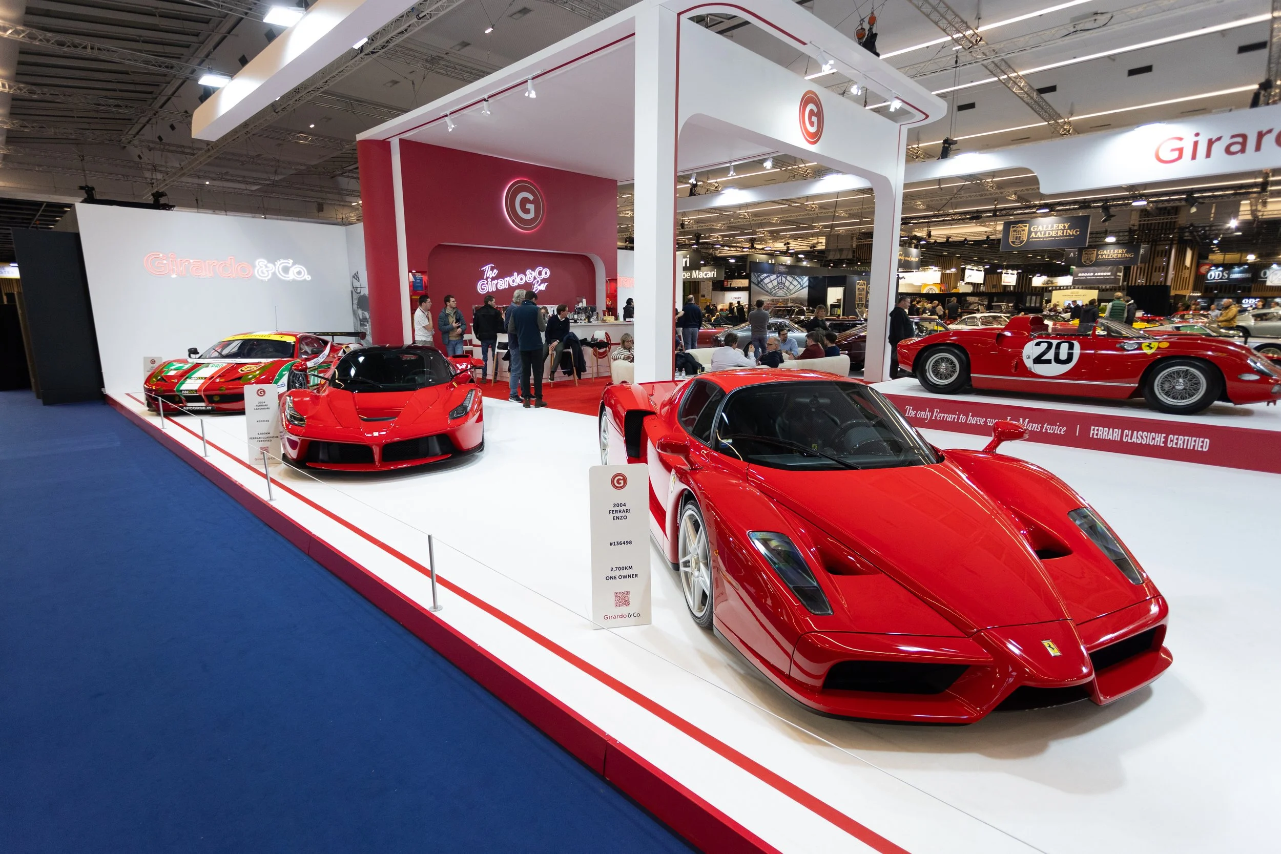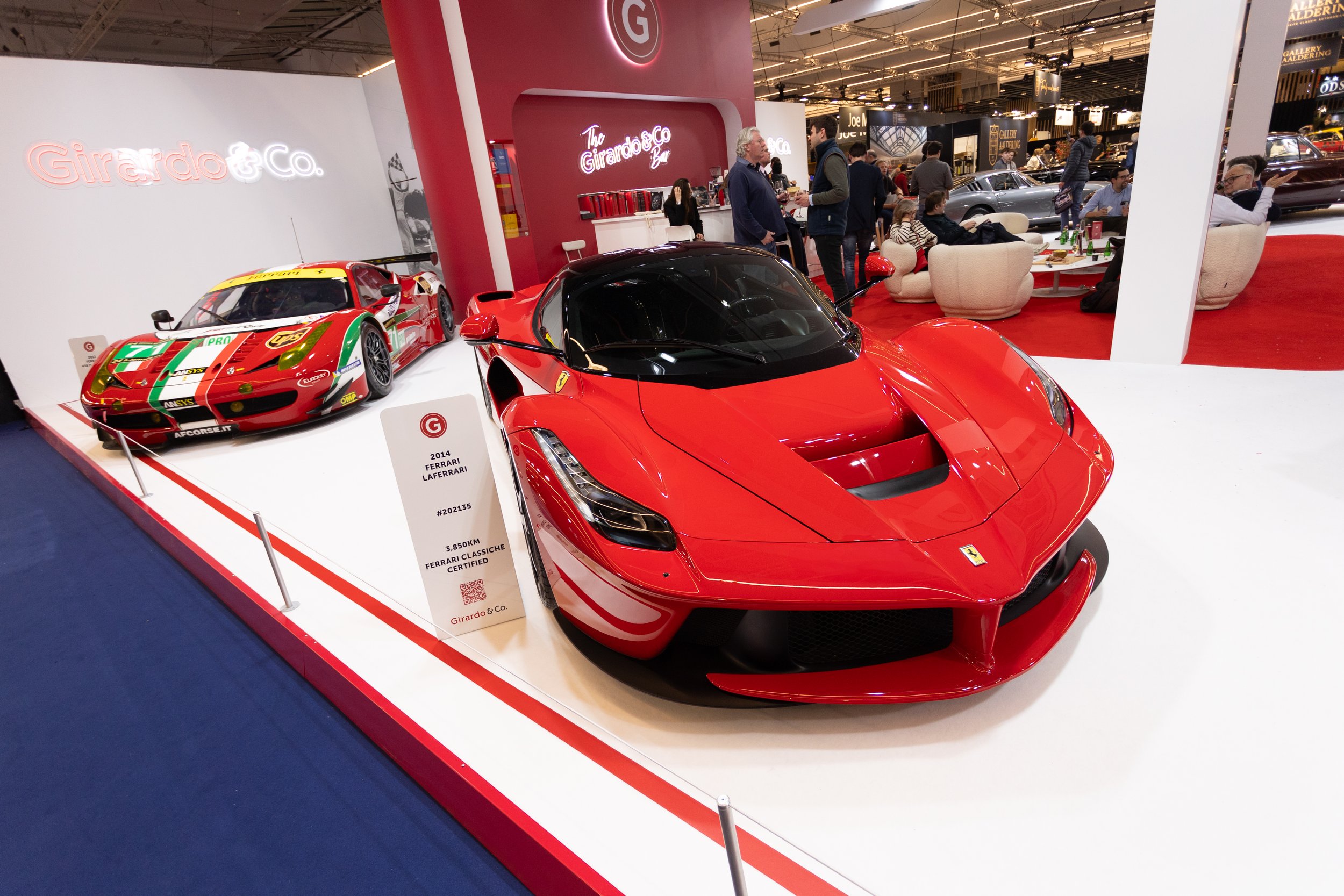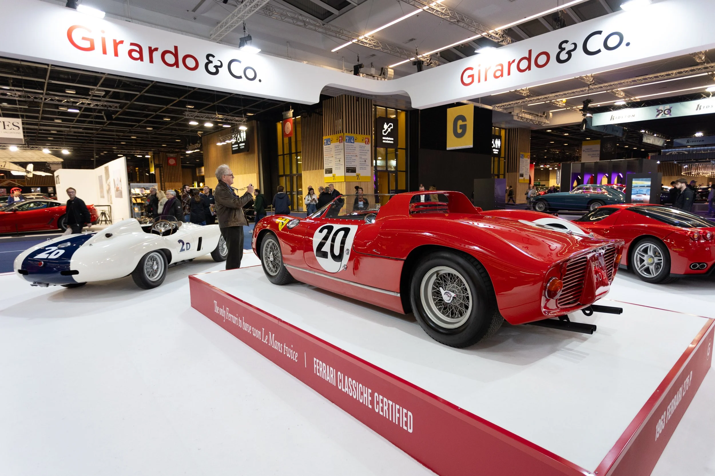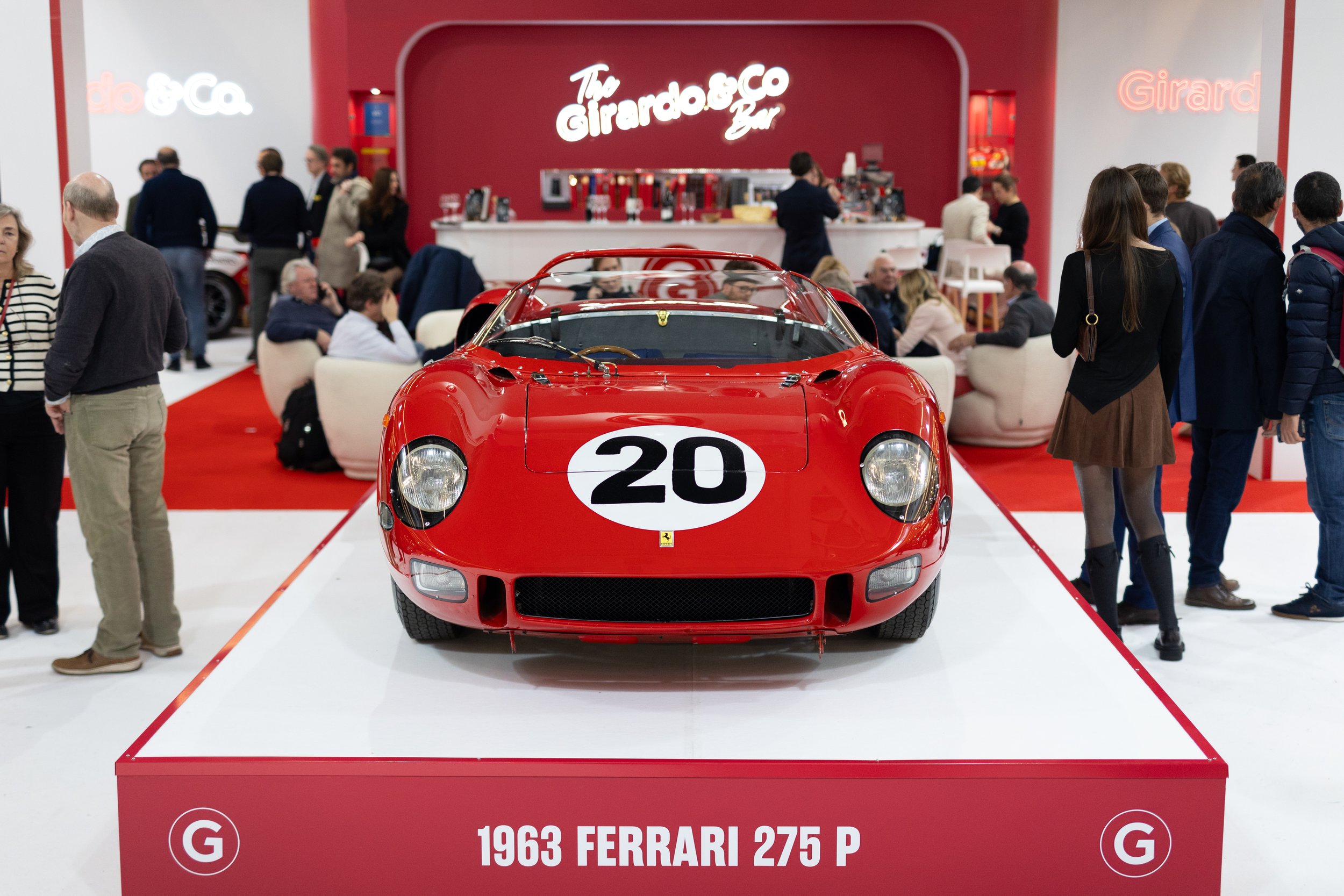 Chez Girardo & Co, là encore, les Ferrari sont à la fête. Le stand complet est destiné à la marque au cheval cabré. On y retrouve notamment les 5 voitures les plus mythiques de la production moderne de la marque : la Ferrari 288 GTO, la F40, la F50, la Enzo et la LaFerrari. Plusieurs autos sortent du lot : notons d’abord la présence de la superbe Ferrari 750 Monza de 1955. Ce châssis #0510M, a connu une riche carrière sportive aux Etats-Unis et est notamment passée entre les mains de Phil Hill et de Caroll Shelby ! Beaucoup plus proche de nous et toujours du côté des voitures de course, notons la présence de la Ferrari 458 GTE châssis F142 GT 2874. Engagée aux 24 heures du Mans 2013 et 2014, la voiture termina à la cinquième position de sa catégorie en 2013 et abandonna l’année suivante. Enfin, véritable joyau du stand, la Ferrari 275 P châssis 0816 est la vainqueur des 24 heures du Mans 1963 et 1964. Une véritable oeuvre d’art !