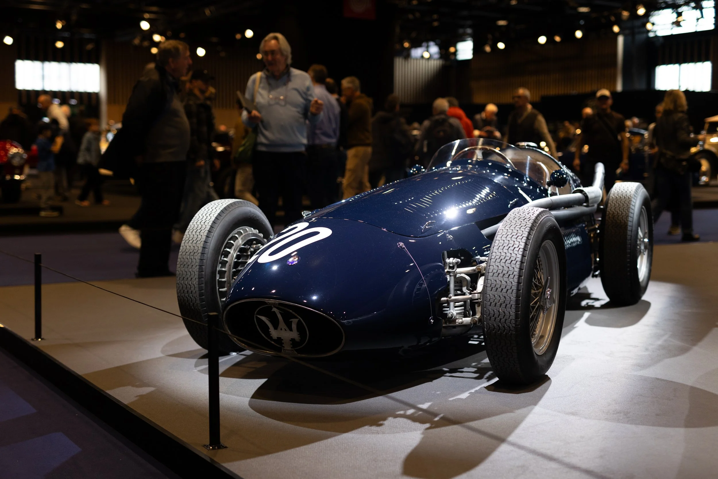 En complément de sa grande vente aux enchères du rez-de-chaussée, Gooding & Co présentait une très belle Pagani Utopia verte de 2024 immatriculée à Monaco. Outre la Ferrari Testarossa Monospechio qui l’accompagnait, c’est surtout la Porsche 718 RS 61 Spyder châssis 718-066 qui a retenu notre attention, Superbe, la voiture de course était accompagnée d’une icône de la compétition Italienne, une Maserati 250 F de 1954 dans une rare teinte bleu !