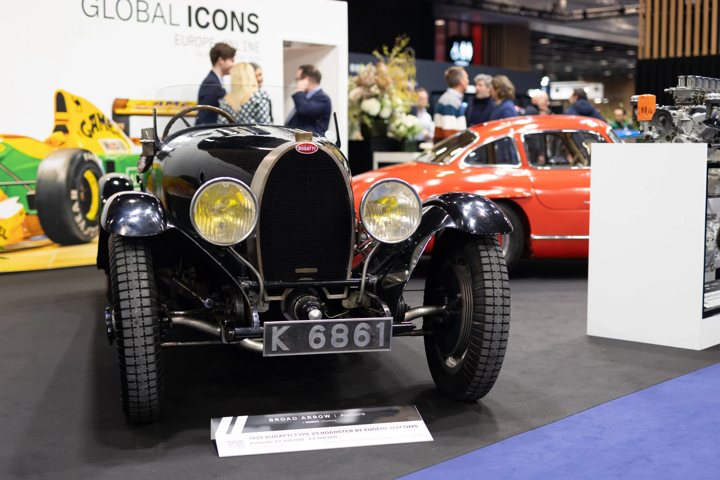 Autre société de vente aux enchères, Broad Arrow Auctions a présenté un stand de grande qualité avec de plusieurs lots très impressionnants. Nous avons particulièrement apprécié la présence la Bugatti Type 43 Roadster, future star de la vente de la Villa d’Este en mai prochain. Présentée dans un état de préservation unique, elle côtoyait la star de la vente Européenne organisée en parallèle du salon : la Lamborghini Miura P400 S de 1971 (châssis 4809). Sur le stand, figuraient également une superbe Mercedes 300SL rouge accompagnée d’une très rare Porsche 911 Carrera RS 2.7. Ces modèles étaient entourés d’une grande quantité de caques et autres combinaisons de pilotes.