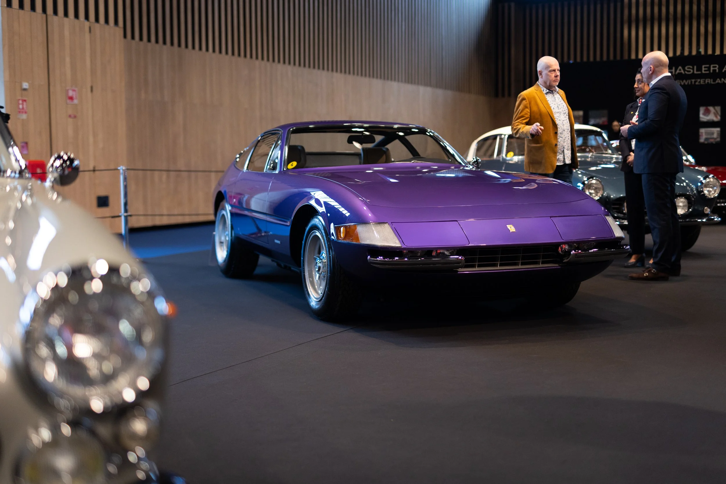 Lukas Huni & Niki Hasler se sont associés pour présenter une sélection très éclectique de véhicules anciens. Véritable star de ce stand et même du salon, la Ferrari 365GTB/4 Daytona présentée dans un coloris Viola Dino Metallizzato a retenu l’attention de bon nombre de spectateurs. Avec seulement 7 exemplaires produits, ce châssis, livré neuf en Suisse, était la voiture qui sortait du lot ! Notons également sur ce stand la présence d’une très belle Ferrari 250 GT Tour de France et d’une très belle Ferrari 275 GTB peinte dans un très beau Rosso Dino ! D’autres pépites étaient également présentes comme la très belle BMW M1 ou une importante sélection de Bentley.