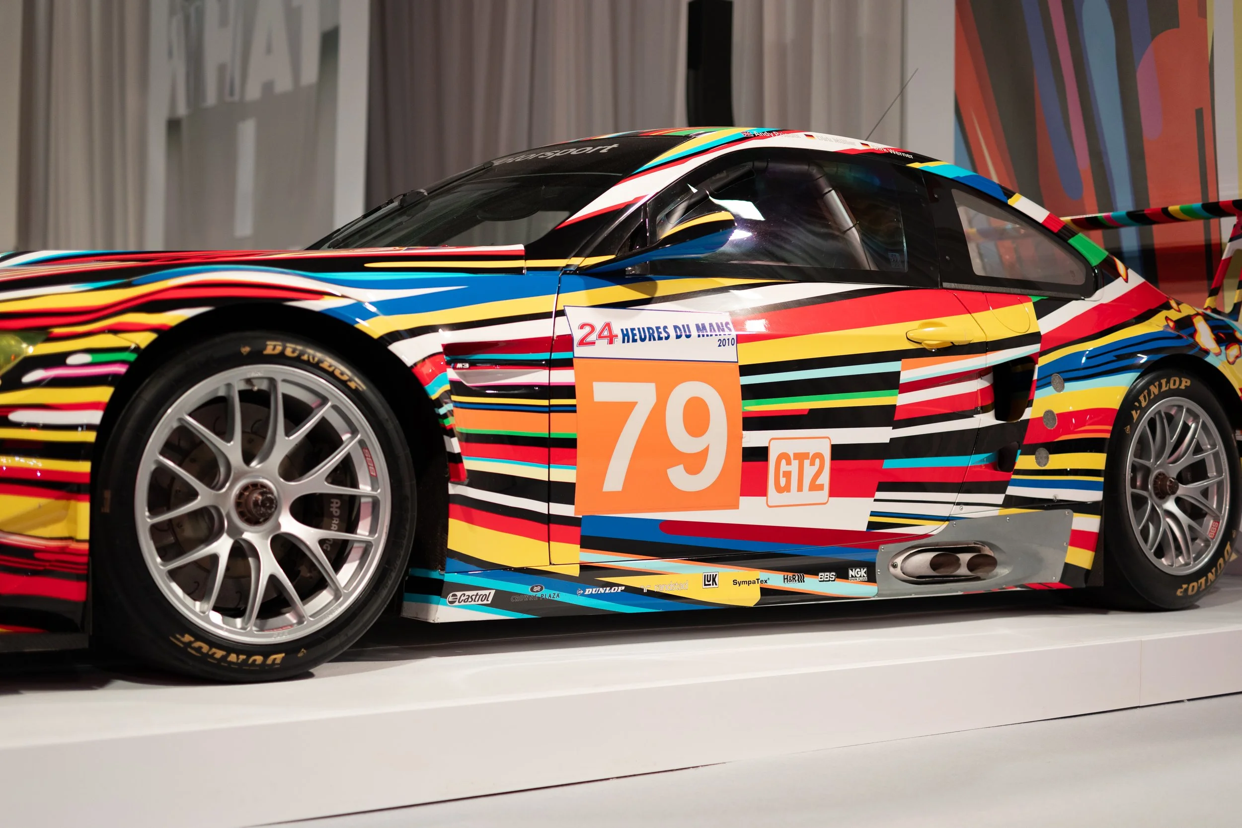 Relancée en 1999, l’idée de renouer avec les Art cars émerge et c’est Jenny Holzer qui décora la V12 LMR numéro 16 d’une multitude de phrases courtes réparties de part et d’autre de la carrosserie. Dernièrement, c’est Jeff Koons qui a pu s’exprimer sur la BMW M3 numéro 79 des 24 Heures du Mans 2010 avec une œuvre, là encore, restée dans la mémoire collective. La dernière Art car en date est celle de Julie Mehretu qui a été sollicitée en 2024 pour célébrer le retour de la marque dans la catégorie reine de l’endurance. Manque de chance, comme quasiment toutes ses prédécesseurs, la BMW M Hybrid V8 numéro 20 dû rapidement abandonner après n’avoir couvert que 96 tours.