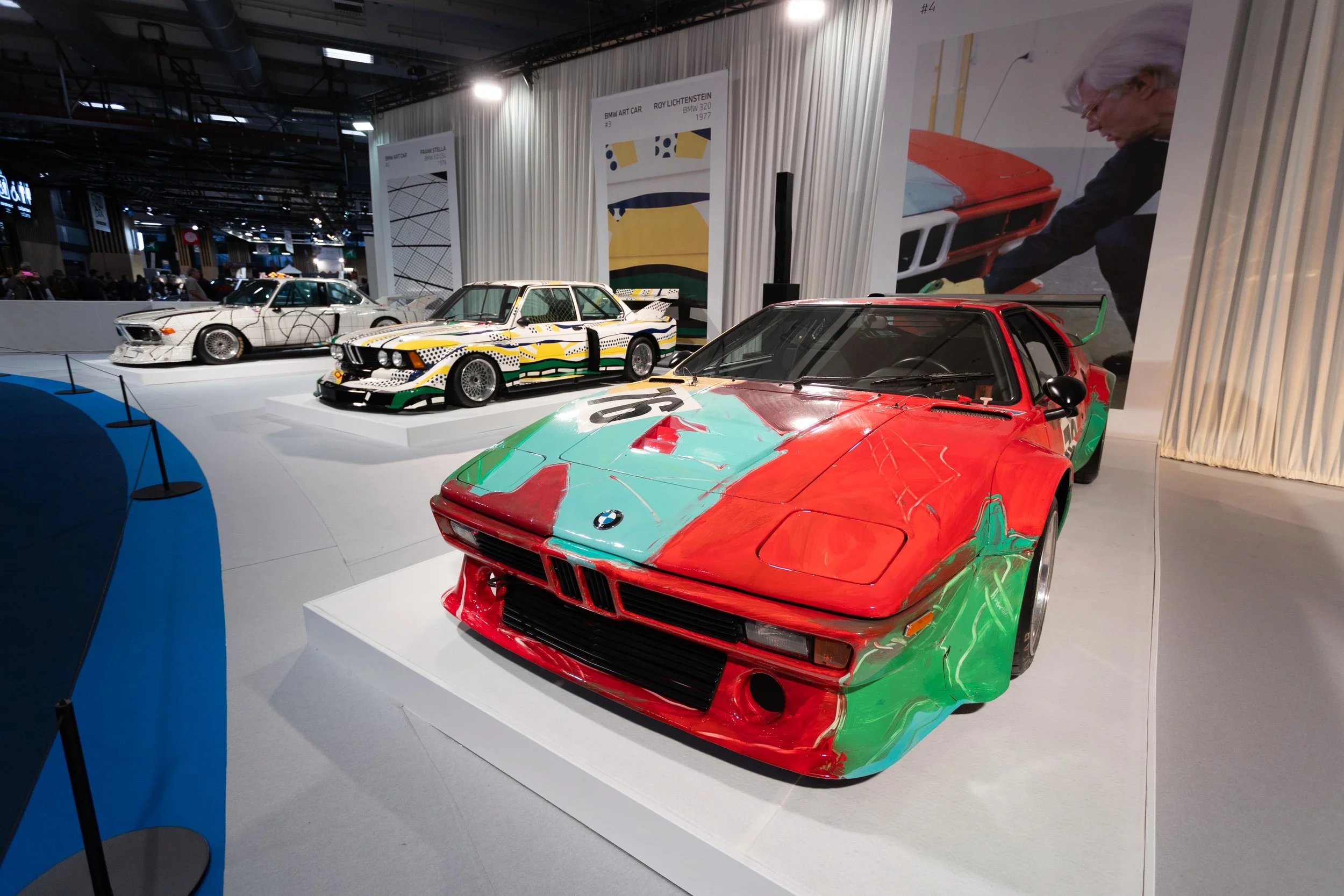 Outre les marchands, de très belles expositions étaient organisées. Parmi elles, le BMW Art Car World Tour a offert une lecture profondément culturelle de l’automobile. L’idée de mixer les 24 Heures du Mans et le monde de l’art a déjà plus de 50 ans ! C’est en effet en 1975 qu’Hervé Poulain, gentleman driver et désormais célèbre commissaire-priseur chez Artcurial, eu l'idée de faire décorer la carrosserie de sa BMW 3.0 CSL par un artiste de renommée internationale. C’est Alexander Calder, sculpteur et peintre Américain qui fut le premier à s’exercer sur la carrosserie de la voiture engagée en 1975 ! Si les résultats de la BMW numéro 93 ne furent pas au rendez-vous, l’écho de cette initiative fut retentissant et saluée de tous. Devant le succès populaire de cette première livrée, il paraissait inévitable de continuer sur cette lancée, en 1976, c’est Frank Stella qui apporte sa patte sur une 3.0 CSL biturbo avant de laisser sa place l’année suivante à Roy Lichtenstein sur la toute nouvelle BMW 320. En 1979, c’est le célèbre Andy Warhol qui se plia à l’exercice sur une iconique BMW M1 dont la beauté restera longtemps gravée dans les livres d’histoire.